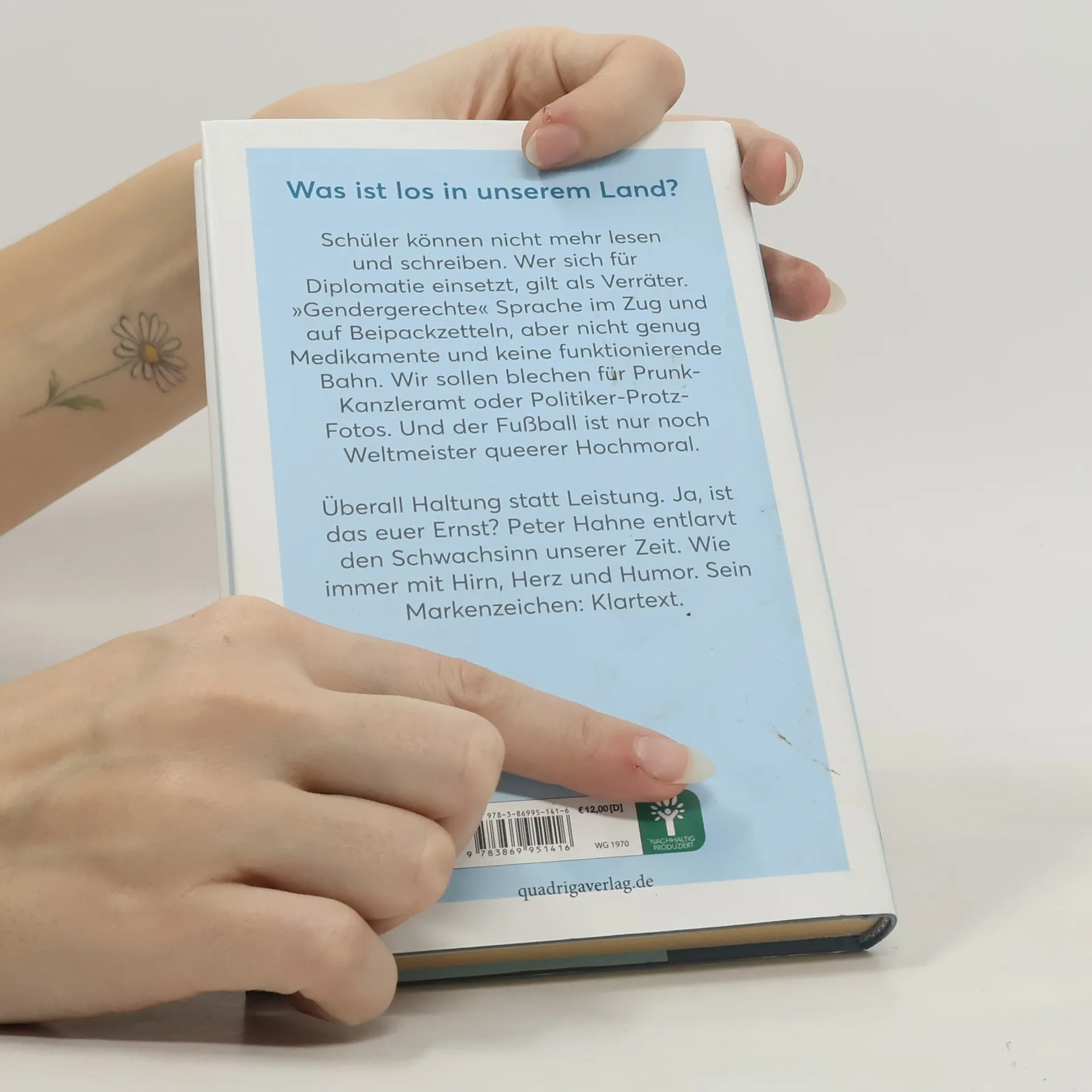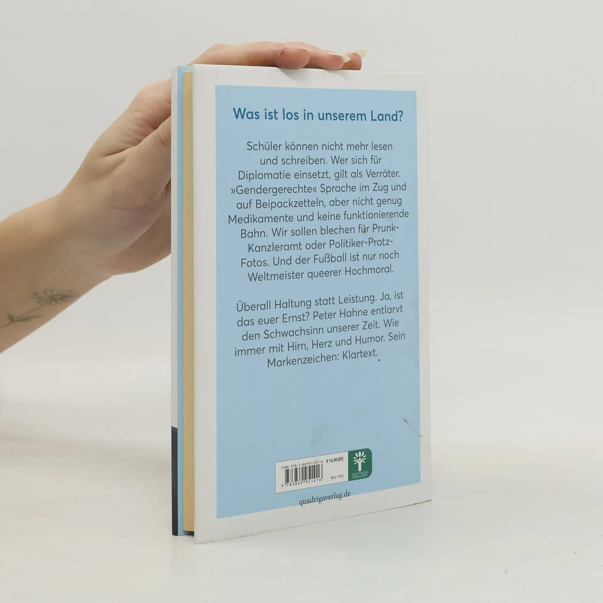 Was ist los in unserem Land? Schüler können nicht mehr lesen und schreiben. Wer sich für Diplomatie einsetzt, gilt als Verräter. »Gendergerechte« Sprache im Zug und auf Beipackzetteln, aber nicht genug Medikamente und keine funktionierende Bahn. Wir sollen blechen für Prunk-Kanzleramt oder Politiker-Protz-Fotos. »Corona« bleibt unaufgeklärt. Warnhinweise für »Otto« oder »Harald Schmidt«, als wäre das Volk blöd. Und der Fußball ist nur noch Weltmeister queerer Hochmoral. Überall Haltung statt Leistung. Ja, ist das euer Ernst? Peter Hahne entlarvt den Schwachsinn. Wie immer mit Hirn, Herz und Humor. Sein Markenzeichen: Klartext.