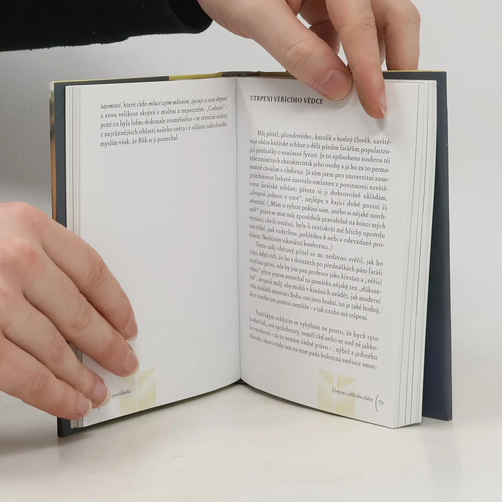 V šestnácti esejích této knihy čtenář nalezne kritické úvahy o stavu a aktuálních problémech našeho světa i o současných proměnách náboženství, laskavě humorné šlehy do vlastních řad, filozofické meditace nad paradoxními biblickými výroky i psychologické postřehy z autorovy dlouholeté zkušenosti při duchovním doprovázení lidí, stojících mezi vírou a pochybností a hledajících odpovědi na vážné životní otázky.