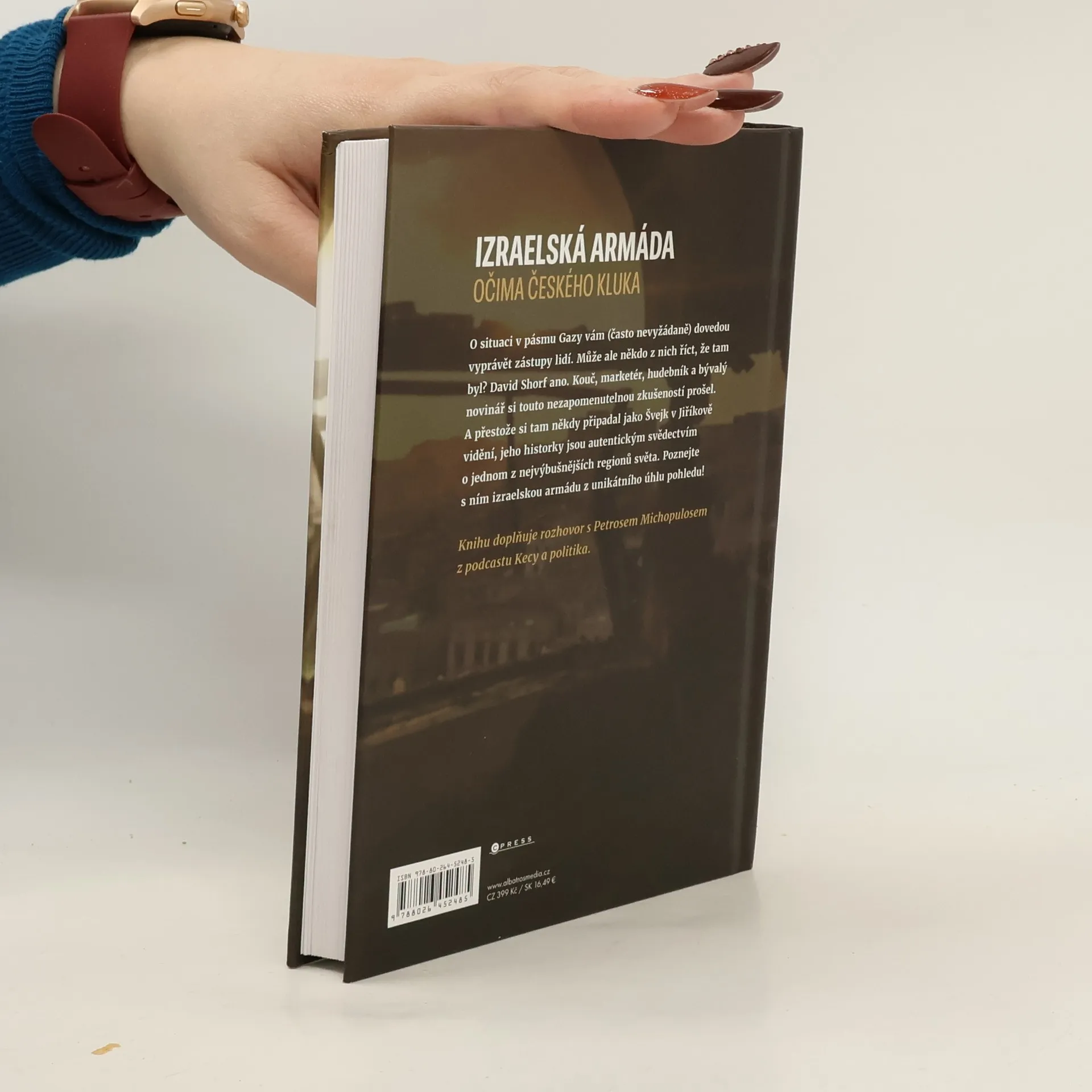 Historky z izraelské armády. Neuvěřitelné zážitky ze služby v Izraelských obranných silách. O situaci v pásmu Gazy vám (často nevyžádaně) dovedou vyprávět zástupy lidí. Může ale někdo z nich říct, že tam byl? David Shorf ano. Kouč, marketér, hudebník a bývalý novinář strávilv řadách proslulé izraelské armády tři roky. A přestože si tam někdy připadal jako Švejk v Jiříkově vidění, jeho historky jsou autentickým svědectvím o jednom z nejvýbušnějších regionů světa. Poznejte s ním izraelskou armádu z unikátního úhlu pohledu! Knihu doplňuje rozhovor s Petrosem Michopulosem z podcastu Kecy a Politika.