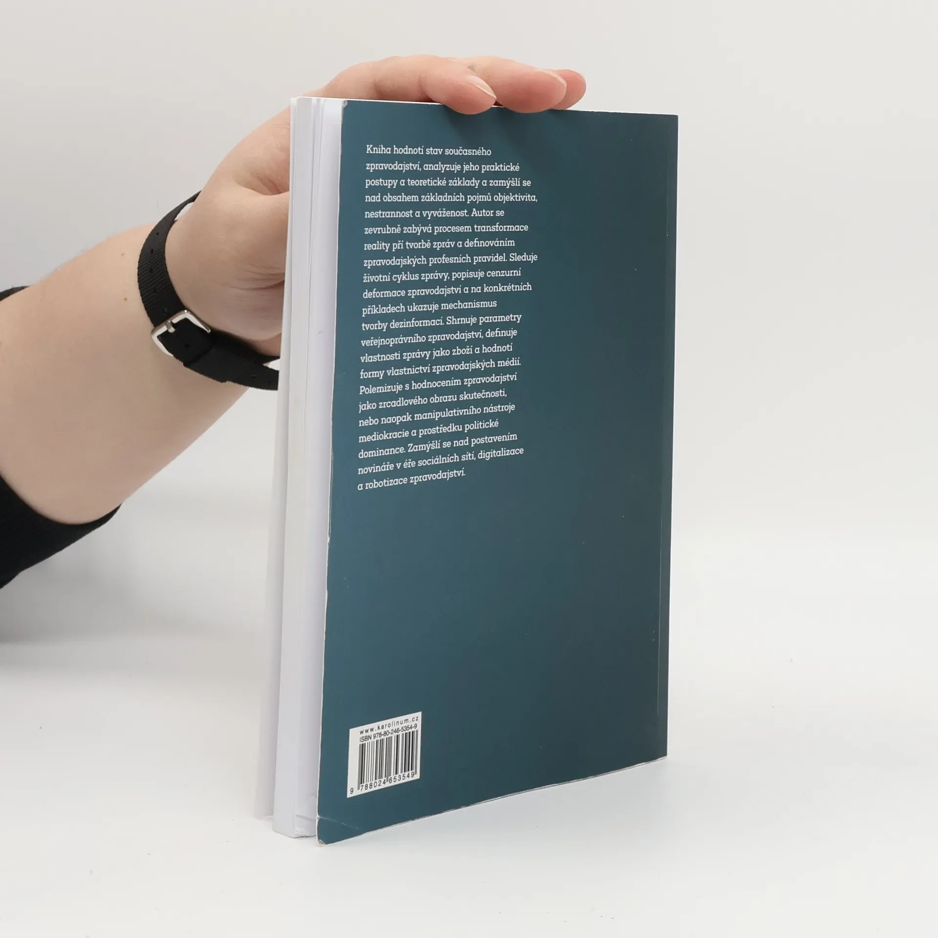 Kniha hodnotí stav současného zpravodajství, analyzuje jeho praktické postupy a teoretické základy a zamýšlí se nad obsahem základních pojmů objektivita, nestrannost a vyváženost. Autor se zevrubně zabývá procesem transformace reality při tvorbě zpráv a definováním zpravodajských profesních pravidel. Sleduje životní cyklus zprávy, popisuje cenzurní deformace zpravodajství a na konkrétních příkladech ukazuje mechanismus tvorby dezinformací. Shrnuje parametry veřejnoprávního zpravodajství, definuje vlastnosti zprávy jako zboží a hodnotí formy vlastnictví zpravodajských médií. Polemizuje s hodnocením zpravodajství jako zrcadlového obrazu skutečnosti, nebo naopak manipulativního nástroje mediokracie a prostředku politické dominance. Zamýšlí se nad postavením novináře v éře sociálních sítí, digitalizace a robotizace zpravodajství.