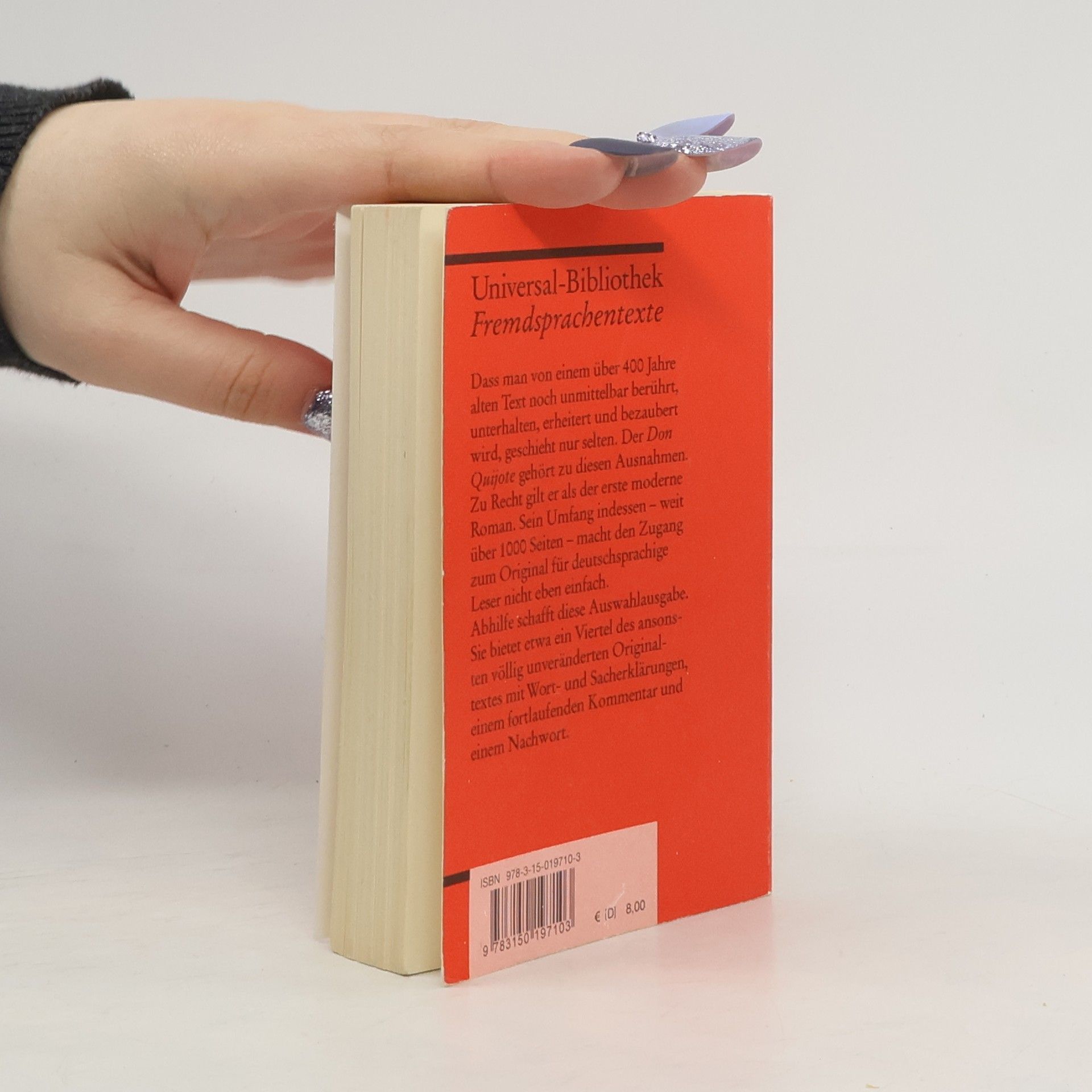 Spanische Literatur in Reclams Roter Reihe: das ist der spanische Originaltext – ungekürzt und unbearbeitet mit Worterklärungen am Fuß jeder Seite, Nachwort und Literaturhinweisen. Zu Recht gilt der »Don Quijote« als der erste moderne Roman. Sein Umfang indessen macht es dem Leser nicht einfach, ihn im Original zu lesen. Die Auswahl, die der renommierte Hispanist Hans-Jörg Neuschäfer zusammengestellt hat, bietet etwa ein Viertel des Originaltextes mit ausführlichen Lesehilfen. Spanische Lektüre: Niveau B2–C1 (GER)