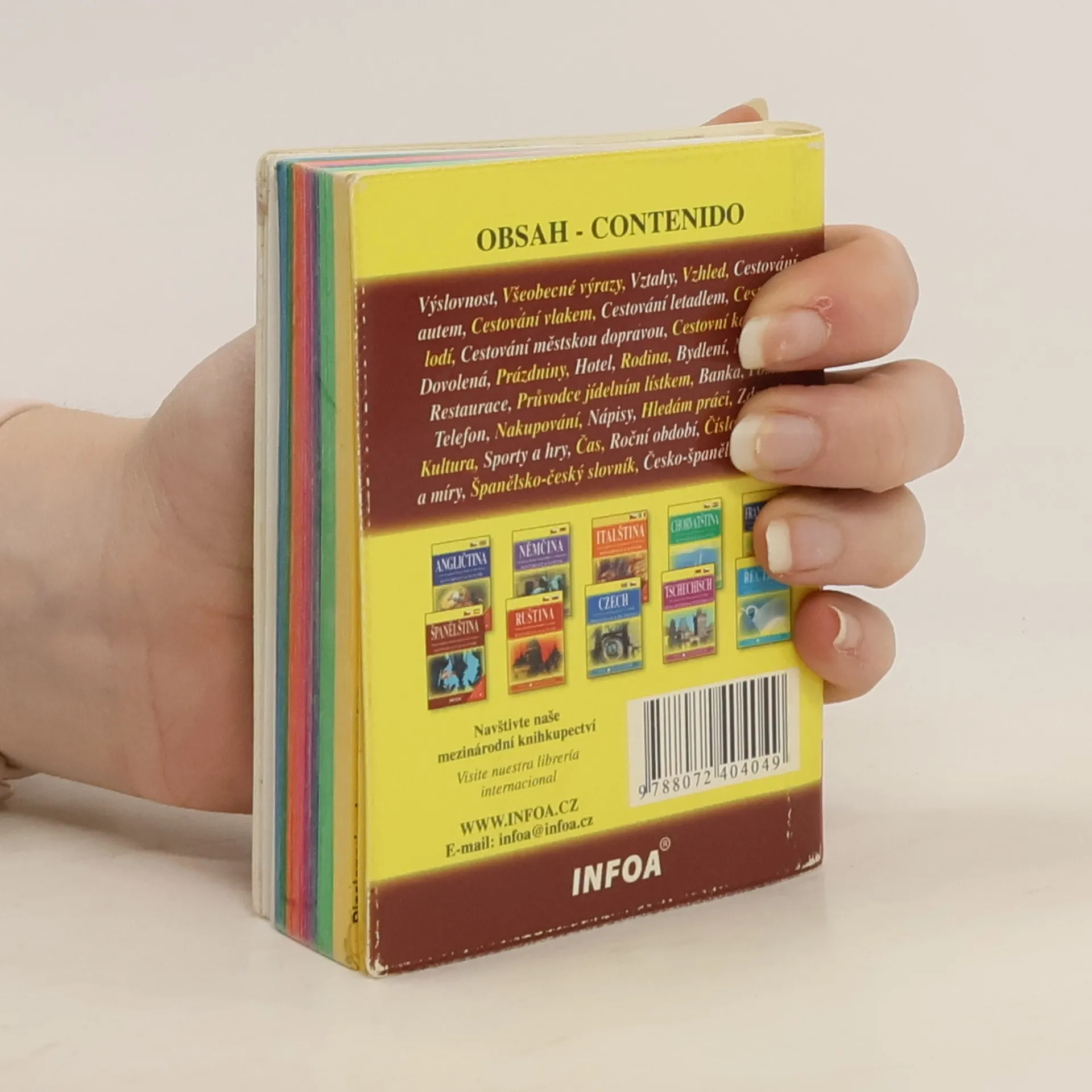 Přehledná jazyková příručka obsahuje základní konverzační témata potřebná v situacích, které nás při cestování potkávají - hotel, restaurace, nakupování atd. Kapitoly jsou barevně členěny, v závěru oboustranný slovníček.