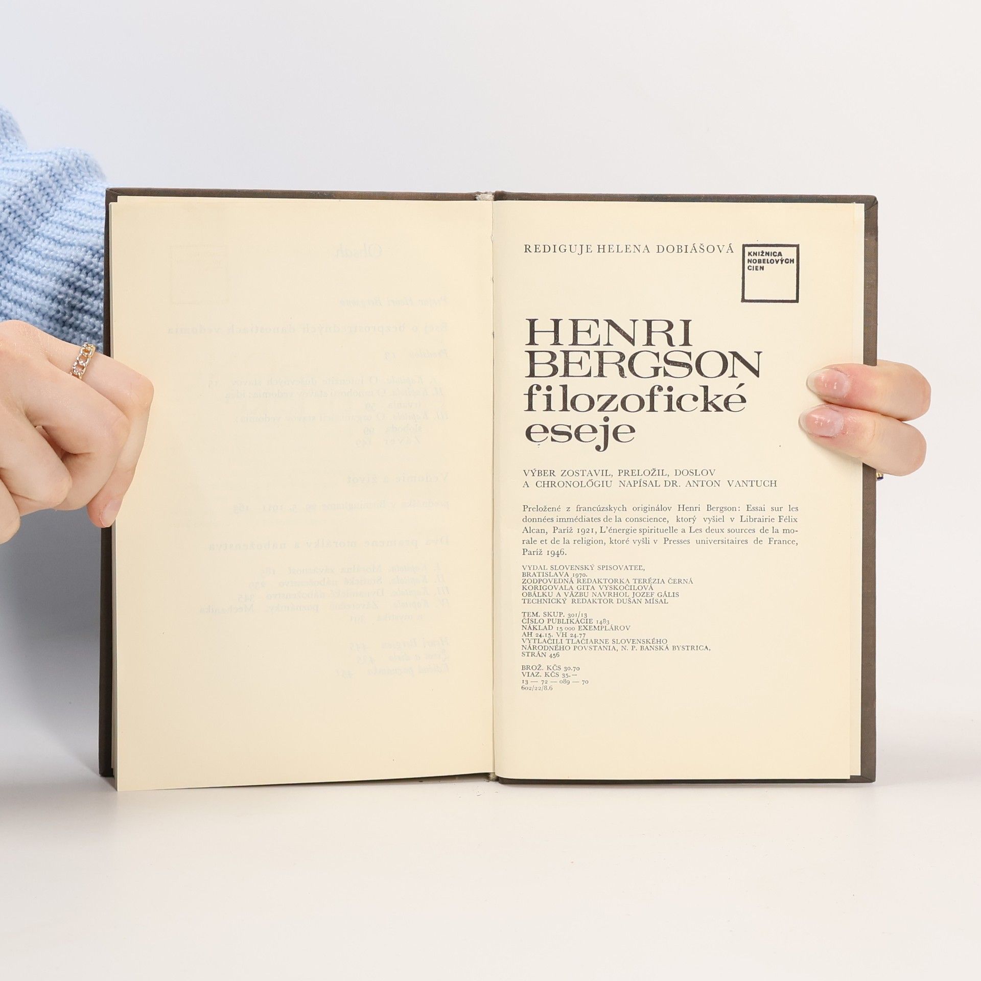 Filozofické eseje, Henri Bergson, Anton Vantuch