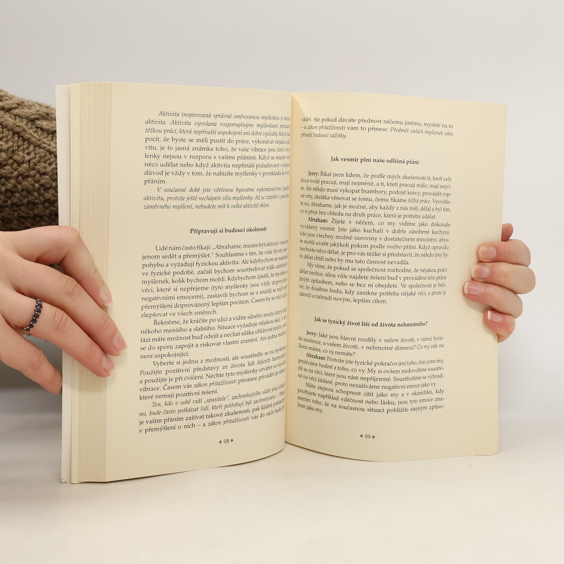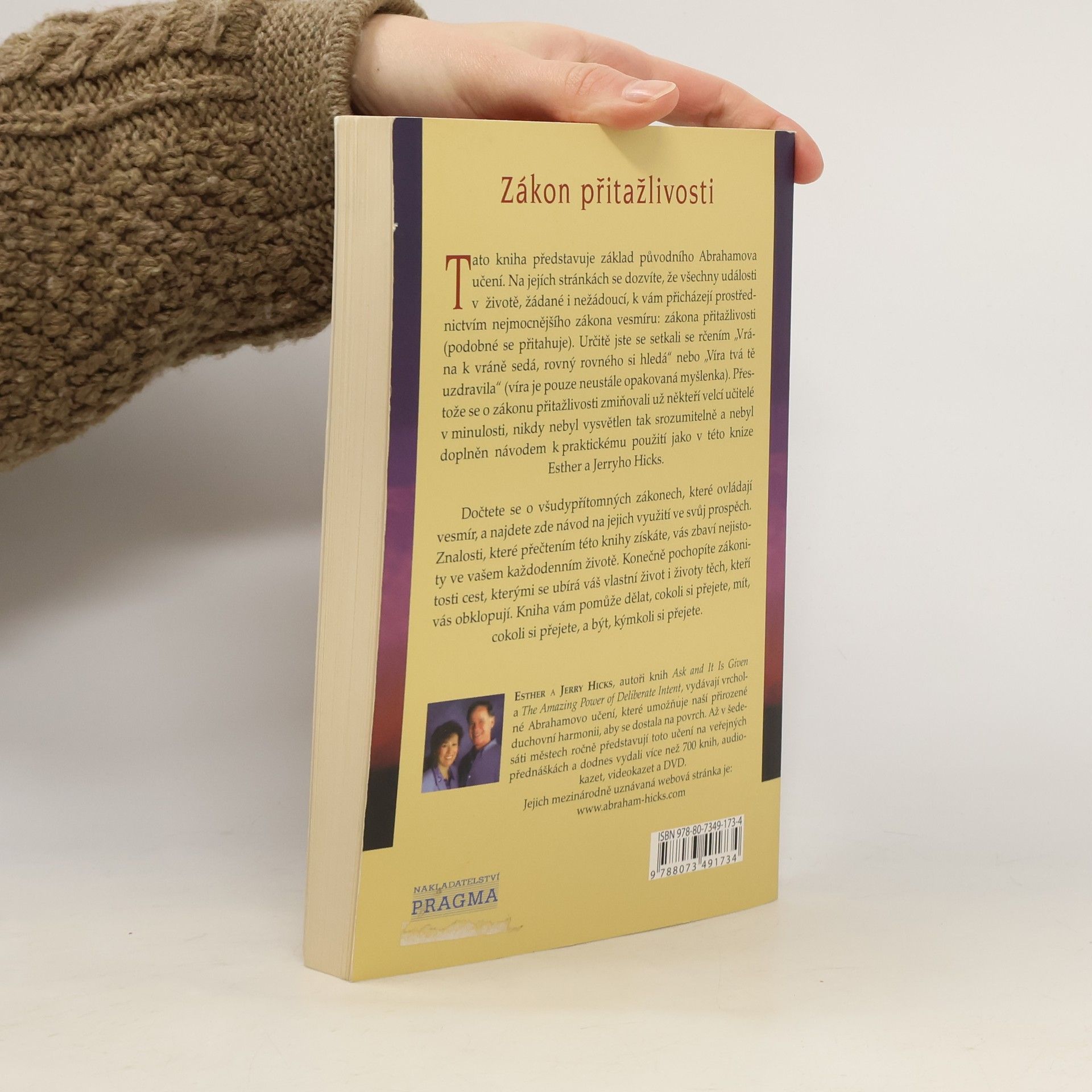 Tato kniha představuje základ původního Abrahamova učení. Na jejích stránkách se dozvíte, že všechny události v životě, žádané i nežádoucí, k vám přicházejí prostřednictvím nejmocnějšího zákona vesmíru: zákona přitažlivosti (podobné se přitahuje). Určitě jste se setkali se rčením „Vrána k vráně sedá, rovný rovného si hledá“ nebo „Víra tvá tě uzdravila“ (víra je pouze neustále opakovaná myšlenka). Přestože se o zákonu přitažlivosti zmiňovali už někteří velcí učitelé v minulosti, nikdy nebyl vysvětlen tak srozumitelně a nebyl doplněn návodem k praktickému použití jako v poslední knize autorů Esther a Jerryho Hicksových. Dočtete se o všudypřítomných zákonech, které ovládají vesmír a najdete zde návod k jejich využití ve svůj prospěch. Znalosti, které přečtením této knihy získáte, vás zbaví nejistoty ve vašem každodenním životě. Konečně pochopíte zákonitosti cest, kterými se ubírá váš vlastní život i životy těch, kteří vás obklopují. Kniha vám pomůže dělat, cokoli si přejete, mít, cokoli si přejete, a být, kýmkoli si přejete.