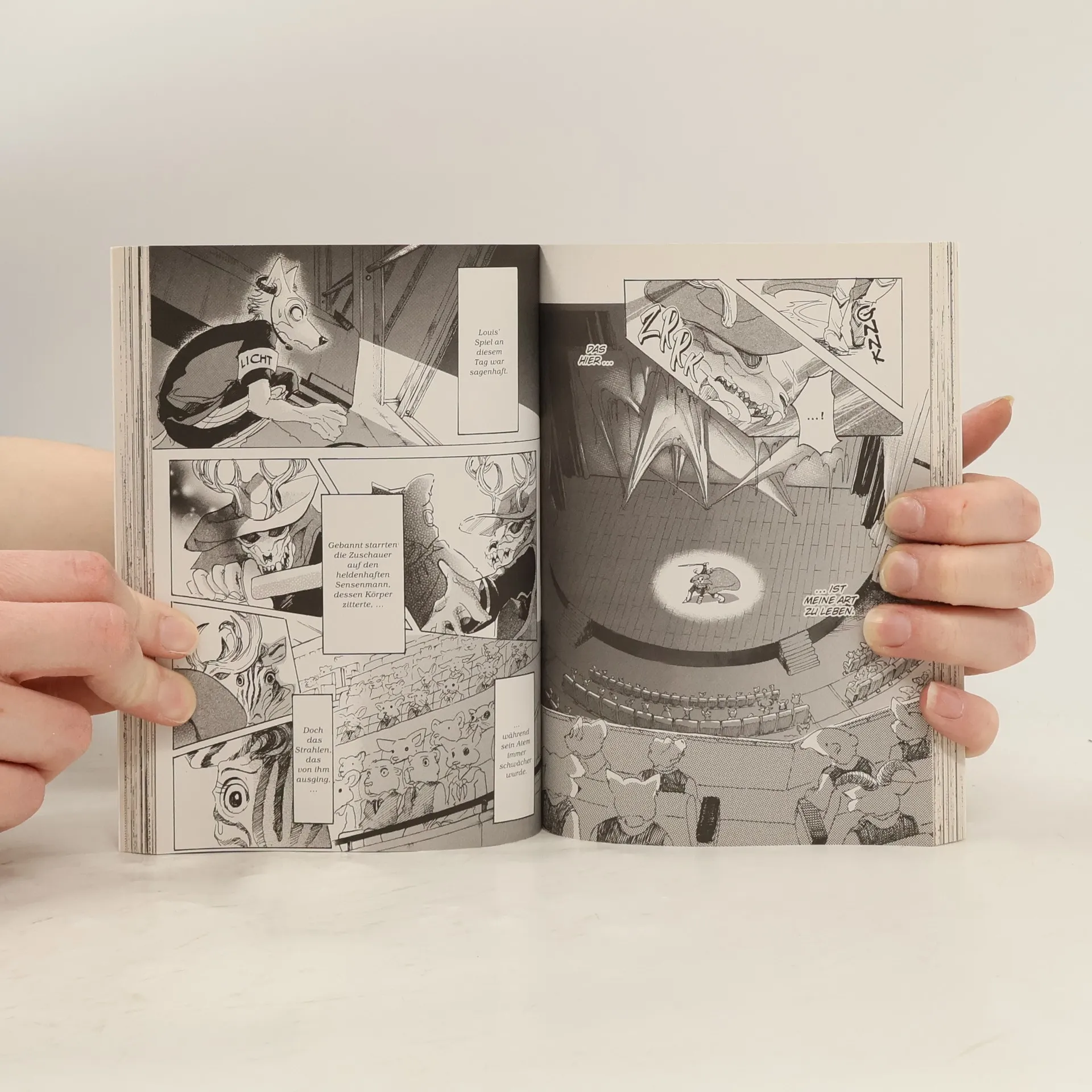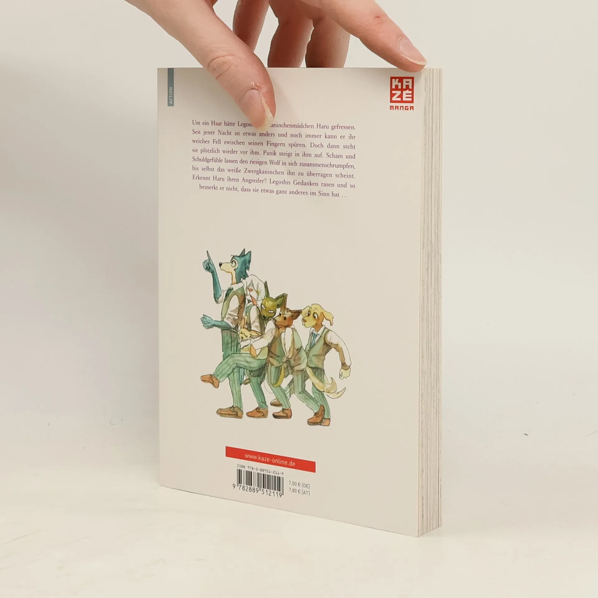 Um ein Haar hätte Legoshi das Kaninchenmädchen Haru gefressen. Seit jener Nacht ist etwas anders und noch immer kann er ihr weiches Fell zwischen seinen Fingern spüren. Doch dann steht sie plötzlich wieder vor ihm. Panik steigt in ihm auf. Scham und Schuldgefühle lassen den riesigen Wolf in sich zusammenschrumpfen, bis selbst das weiße Zwergkaninchen ihn zu überragen scheint. Erkennt Haru ihren Angreifer? Legoshis Gedanken rasen und so bemerkt er nicht, dass sie etwas ganz anderes im Sinn hat …