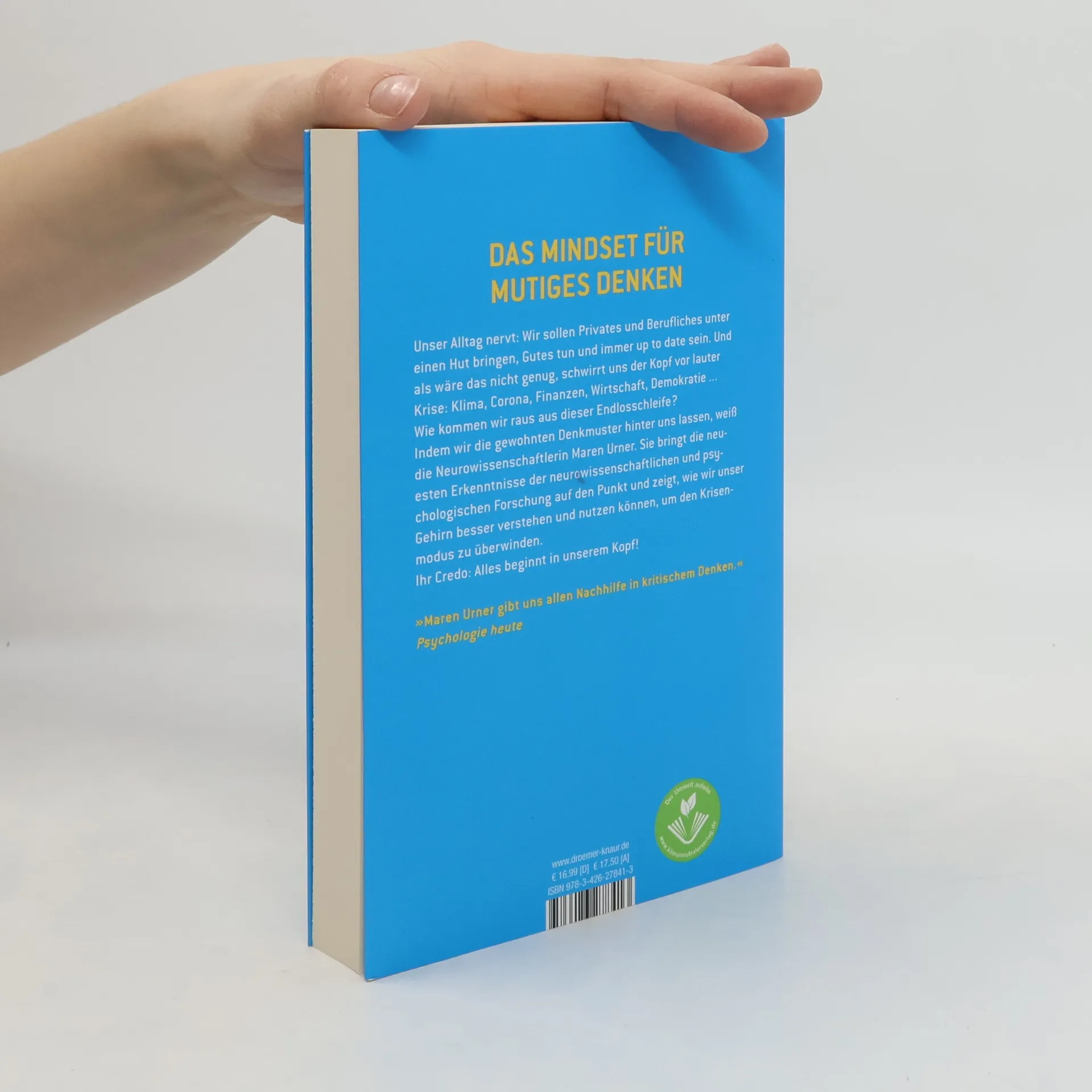 Mit dem Denken von morgen die Probleme von heute lösen In ihrem neuen Sachbuch präsentiert die renommierte Kognitions- und Neurowissenschaftlerin Maren Urner provokante Thesen und innovative Methoden, um unsere festgefahrenen Denkmuster aufzubrechen und neu auszurichten. Nach ihrem Bestseller »Schluss mit dem täglichen Weltuntergang« entlarvt sie die reflexhaften Ängste und trügerischen Beruhigungsmittel der Politik als Hindernisse für zukunftsorientierte Lösungen. Stattdessen plädiert Urner für ein neues „dynamisches“ Denken, das auf aktuellen Erkenntnissen der Neurowissenschaften und Psychologie basiert. Mit Neugier, Mut und Verständnis können wir die Herausforderungen unserer Zeit kreativ und lösungsorientiert angehen – der einzige Weg, um angesichts globaler Krisen wie dem Klimawandel unsere Lebensgrundlagen zu sichern. Die gute Nachricht: Dieser Wandel im Denken führt zu einem nachhaltigen Leben voller Kooperation, Sinnstiftung und positiver Beziehungen. Ein must-read für alle, die mit frischen Ideen und neuem Denken die Welt von morgen gestalten wollen! „Sobald mich meine Berufskrankheiten Zorn, Angst oder Verzweiflung befallen, lese ich Maren Urner. Klug und mit frischer Schärfe zeigt sie, was ein verantwortungsvoller Journalismus leisten kann.“ - Hajo Schumacher