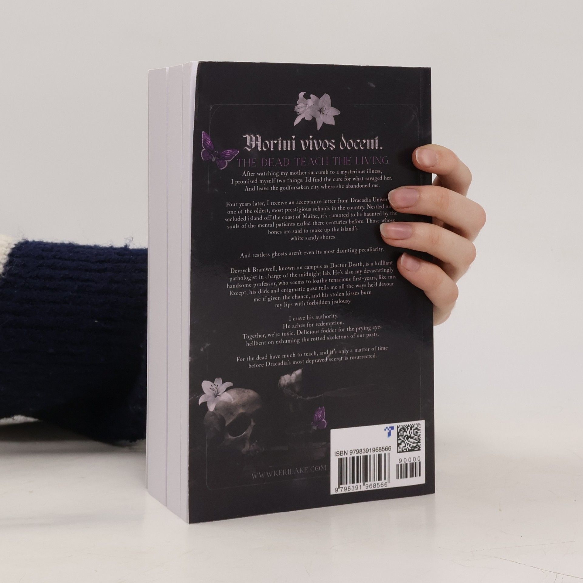 Mortui vivos docent. The dead teach the living. After watching my mother succumb to a mysterious illness, I promised myself two things. I’d find the cure for what ravaged her. And leave the godforsaken city where she abandoned me. Four years later, I receive an acceptance letter from Dracadia University, one of the oldest, most prestigious schools in the country. Nestled on a secluded island off the coast of Maine, it’s rumored to be haunted by the souls of the mental patients exiled there centuries before. Those whose bones are said to make up the island’s white sandy shores. And restless ghosts aren’t even its most daunting peculiarity. Devryck Bramwell, known on campus as Doctor Death, is a brilliant pathologist in charge of the midnight lab. He’s also my devastatingly handsome professor, who seems to loathe tenacious first-years, like me. Except, his dark and enigmatic gaze tells me all the ways he’d devour me if given the chance, and his stolen kisses burn my lips with forbidden jealousy. I crave his authority. He aches for redemption. Together, we’re toxic. Delicious fodder for the prying eyes hellbent on exhuming the rotted skeletons of our pasts. For the dead have much to teach, and it’s only a matter of time before Dracadia’s most depraved secret is resurrected.