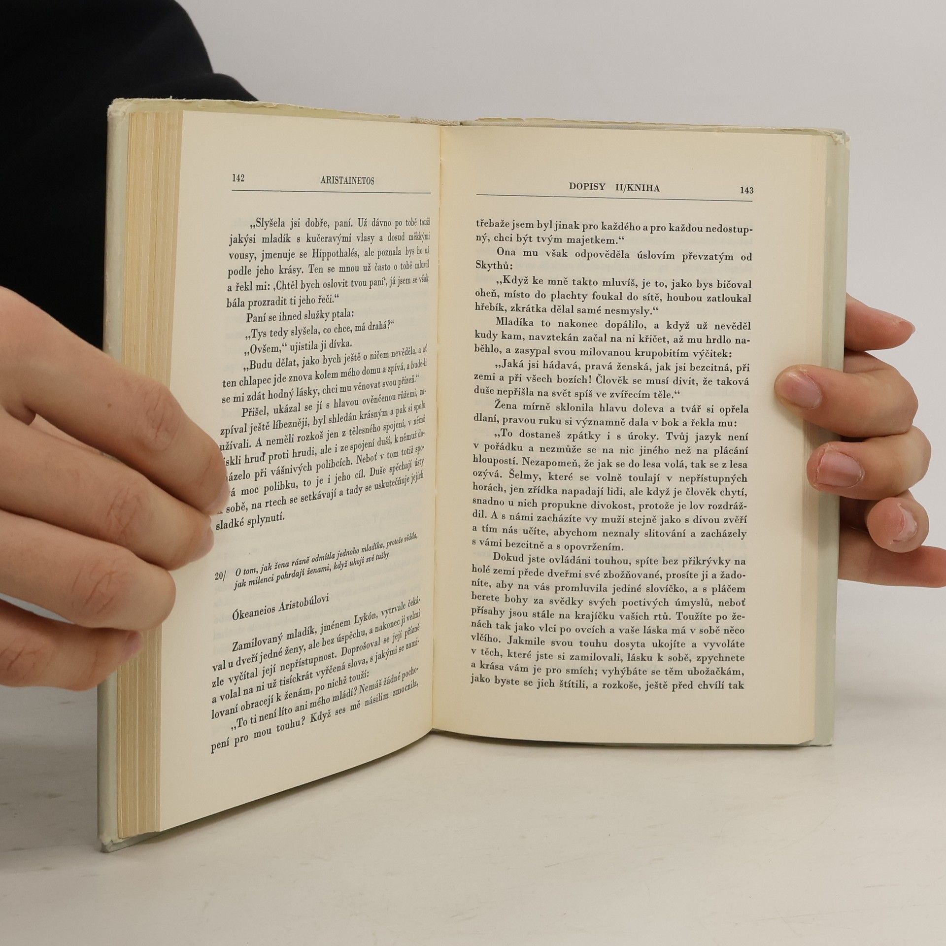 Ailiános: Z dopisů, Alkifrón: Dopisy rybářů, Dopisy vesničanů, Dopisy příživníků, Dopisy hetér, Aristainetos: Dopisy, Filostratos: Milostné dopisy, Lúkiános: Hovory hetér, Theofylaktos: Z dopisů. Milostné dopisy hetér patří k pozdním výtvorům řecké literatury. Jsou to elegantně a pikatně líčené scény řeckého života a představují nesmírně cenný kulturně historický pramen k poznání soukromého života řeckého člověka. Známe jména bezmála sto padesáti řeckých hetér – kněžen lásky –, jejichž milostné listy nic neztratily na svém půvabu dodnes. Vždyť kromě pouličních holek bylo mezi nimi mnoho mladých žen, které absolvovaly zvláštní školy pro hetéry, osvojily si bezvadné společenské chování, dovedly zpívat, tančit, hrát na různé nástroje, ale vyznaly se i v literatuře a ve filosofii. Není divu, že hetéry byly pro své estetické i etické hodnoty nezřídka i trvale milovány. Názor tehdejší společnosti na tyto umělkyně lásky, oddávající se mužům sice za peníze, ale většinou podle vlastního zalíbení, nebyl dotčen pokřivujícím vztahem soukromého vlastníka k bytosti hmotně i duchovně podřízené. V této rozkošné knížce milostné korespondence hetér se zvlášť zřetelně zrcadlí lidské vztahy ve světě antiky, vábící současného člověka, zmítaného rozpory moderní civilizace, svou kouzelnou bezprostředností a otevřeností.
