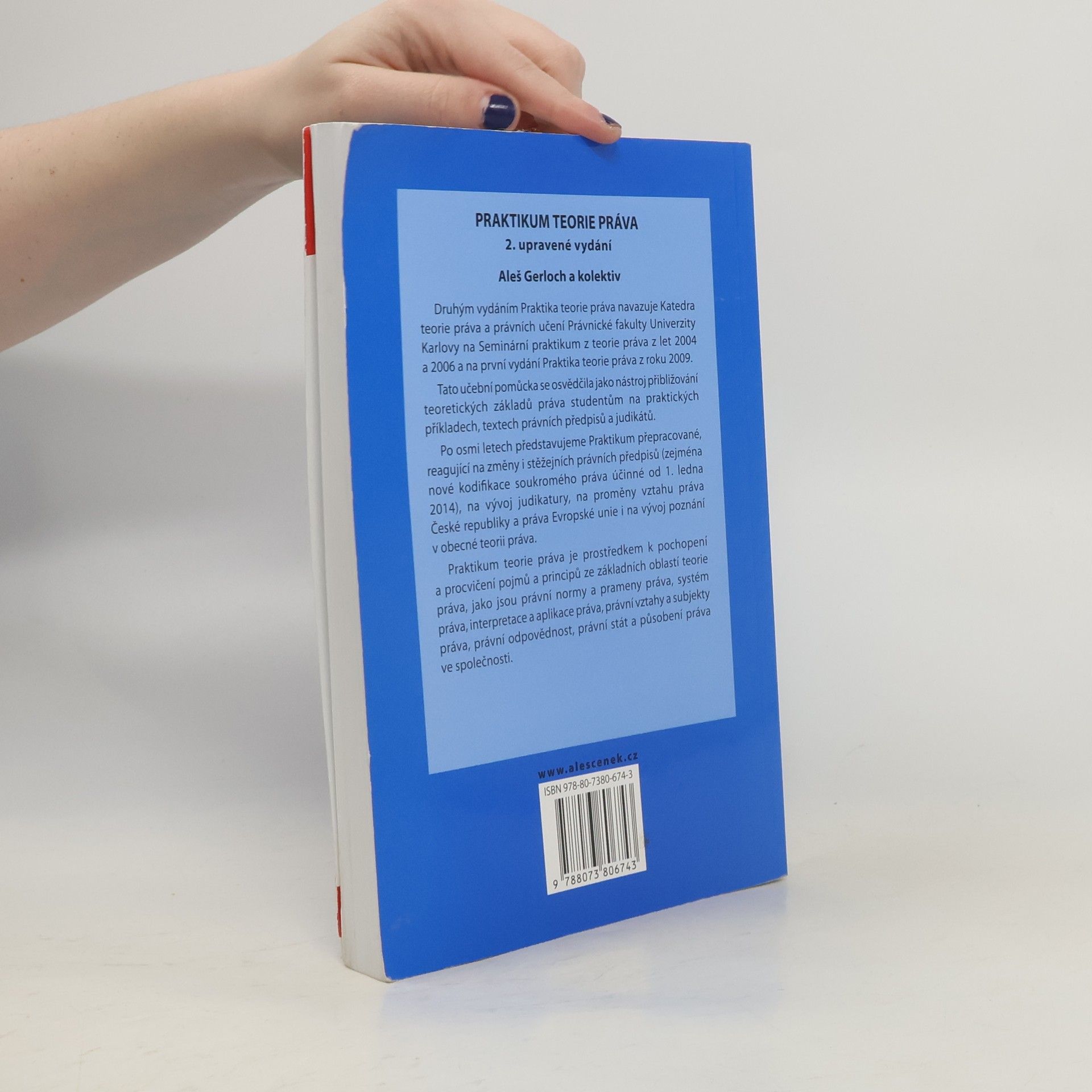 Druhým vydáním Praktika teorie práva navazuje katedra teorie práva a právních učení Právnické fakulty Univerzity Karlovy na Seminární praktikum z teorie práva z let 2004 a 2006 a na první vydání Praktika teorie práva z roku 2009. Tato učební pomůcka se nám osvědčila jako nástroj přibližování teoretických základů práva studentům na praktických příkladech, textech právních předpisů a judikátů. Po osmi letech představujeme Praktikum přepracované, reagující na změny i stěžejních právních předpisů (zejména nové kodifikace soukromého práva, účinné od 1. ledna 2014), na vývoj judikatury, na proměny vztahu práva České republiky a práva Evropské unie i na vývoj poznání o teorii práva. Praktikum teorie práva je prostředkem k pochopení a procvičení pojmů a principů ze základních oblastí teorie práva, jako jsou právní normy a prameny práva, systém práva, interpretace a aplikace práva, právní vztahy a subjekty práva, právní odpovědnost, právní stát a působení práva ve společnosti.