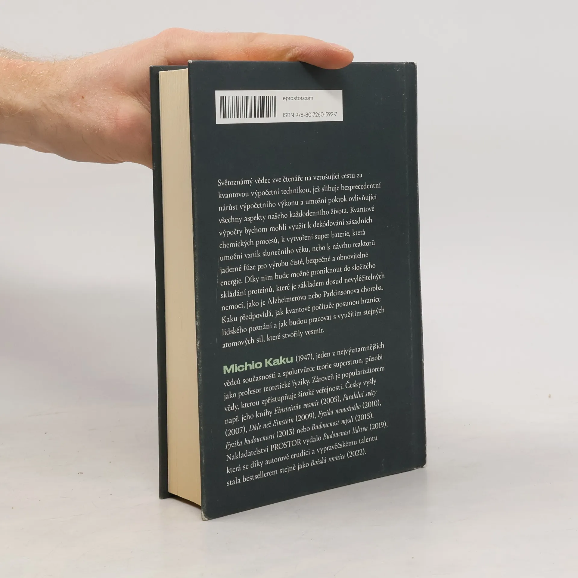 Světoznámý vědec zve čtenáře na vzrušující cestu za kvantovou výpočetní technikou, jež slibuje bezprecedentní nárůst výpočetního výkonu a umožní pokrok ovlivňující všechny aspekty našeho každodenního života. Kvantové výpočty bychom mohli využít k dekódování zásadních chemických procesů, k vytvoření super baterie, která umožní vznik slunečního věku, nebo k návrhu reaktorů jaderné fúze pro výrobu čisté, bezpečné a obnovitelné energie. Díky nim bude možné proniknout do složitého skládání proteinů, které je základem dosud nevyléčitelných nemocí, jako je Alzheimerova nebo Parkinsonova choroba. Kaku předpovídá, jak kvantové počítače posunou hranice lidského poznání a jak budou pracovat s využitím stejných atomových sil, které stvořily vesmír.