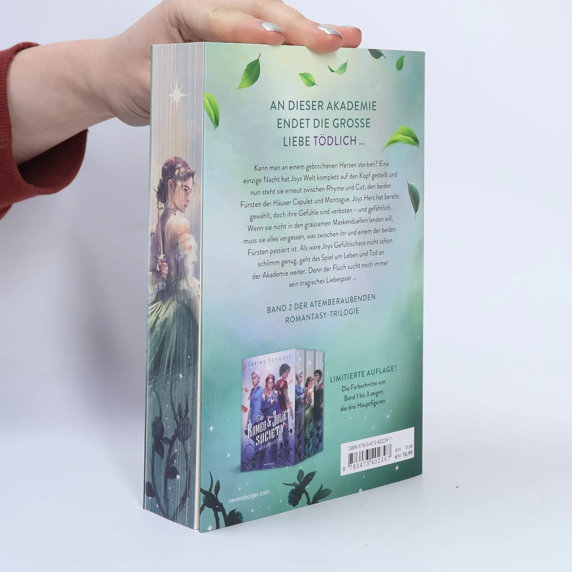 *** Limitierte Auflage mit farbigem Buchschnitt! Nur solange der Vorrat reicht! *** An dieser Akademie endet die erste große Liebe tödlich. Kann man an gebrochenem Herzen sterben? Eine einzige Nacht hat Joys Welt auf den Kopf gestellt: Von nun an muss sie ihre Gefühle verbergen, wenn sie nicht in einem der grausamen Maskenduelle gegen den jungen Fürsten kämpfen will, in den sie sich nicht hätte verlieben dürfen. Doch der Fluch sucht immer noch sein tragisches Liebespaar, und das Spiel um Leben und Tod an der Akademie nimmt eine gefährliche Wendung ... Band 2 der herzzerreißend romantischen Fantasy-Trilogie SPIEGEL-Bestseller Entdecke die komplette Reihe: The Romeo & Juliet Society Band 1: Rosenfluch Band 2: Schlangenkuss Band 3: Diamantentod