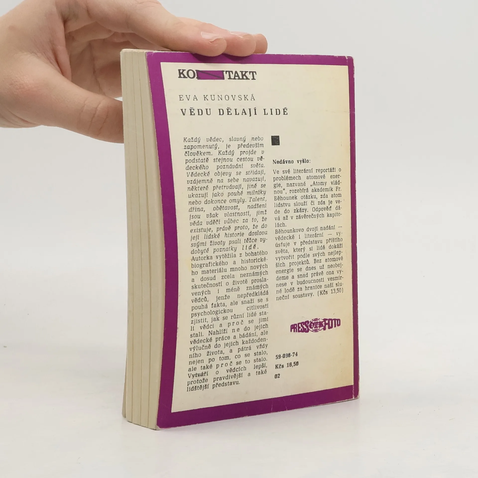 V knížce o slavných vědcích různých dob a zemí akcentuje autorka spíše lidskou stránku jejich osobnosti. Z bohatého biografického materiálu vybrala řadu historek, jimiž se snaží blíže osvětlit vlastnosti těchto velikánů vědy, motivaci jejich jednání i cestu k vědecké práci. Zamýšlíse přitom nad rozdílem mezi prací vědce a umělce, nad postavením ženy ve vědě a nad dalšími problémy vědecké práce.