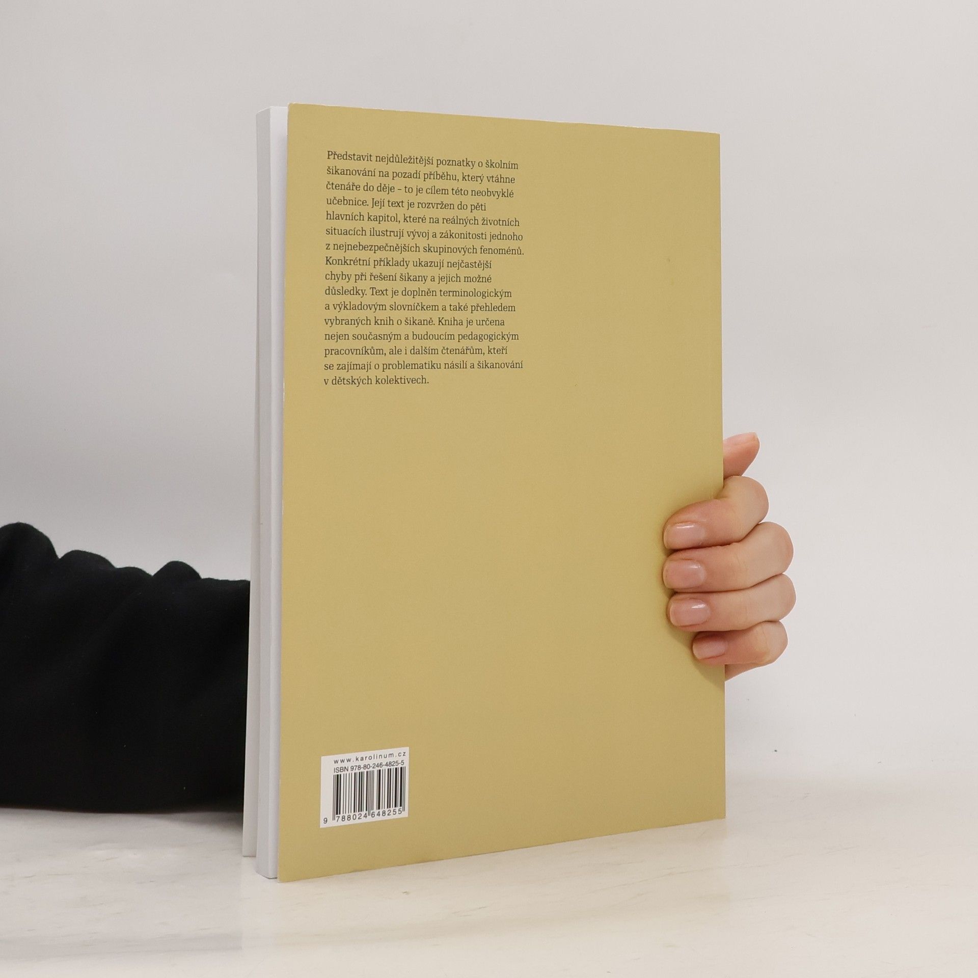 Představit nejdůležitější poznatky o školním šikanování na pozadí příběhu, který vtáhne čtenáře do děje – to je cílem této neobvyklé učebnice. Její text je rozvržen do pěti hlavních kapitol, které na reálných životních situacích ilustrují vývoj a zákonitosti jednoho z nejnebezpečnějších skupinových fenoménů. Konkrétní příklady ukazují nejčastější chyby při řešení šikany a jejich možné důsledky. Čtenáři jsou vedeni k samostatnému uvažování o tématu, k promýšlení vlastních zkušeností a podnětů a k jejich následnému porovnání s uváděnými poznatky. Text je doplněn terminologickým a výkladovým slovníčkem a také přehledem vybraných knižních publikací o šikaně. Kniha je určena nejen současným a budoucím pedagogickým pracovníkům, ale i dalším čtenářům, kteří se zajímají o problematiku násilí a šikanování v dětských kolektivech.