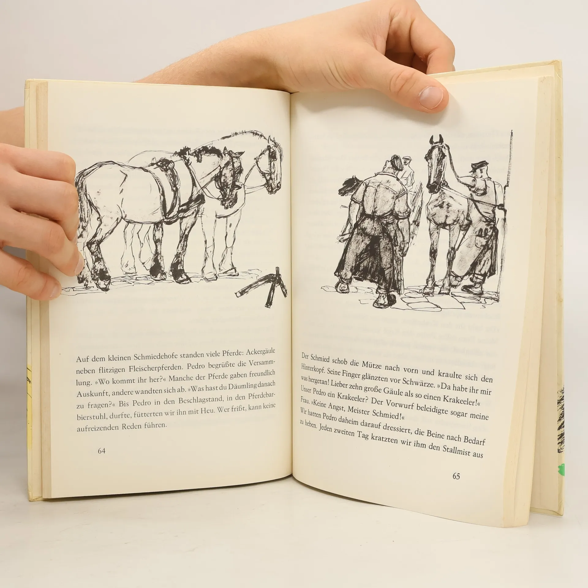 Eine wunderbare poetische Geschichte um den Ponyhengst Pedro. Einfühlsame Naturbeobachtungen, skurrile Einfälle, verrückte Situationen. Pedro macht einen Kürbis zum Fußball, Pedro verliebt sich in eine Lokomotive, Pedro spuckt Geldstücke. Aber warum blieb Pedro Nichtraucher? Ein in vielen Farben flimmerndes Plädoyer für das Zusammenleben von Mensch und Tier, für die Schönheiten unserer Umwelt. Mit stimmungsvollen Zeichnungen von Hans Baltzer, von Tierliebe geprägt, so daß die Mentalität von Pony Pedro sich allen Betrachtern und Lesern mitteilt.