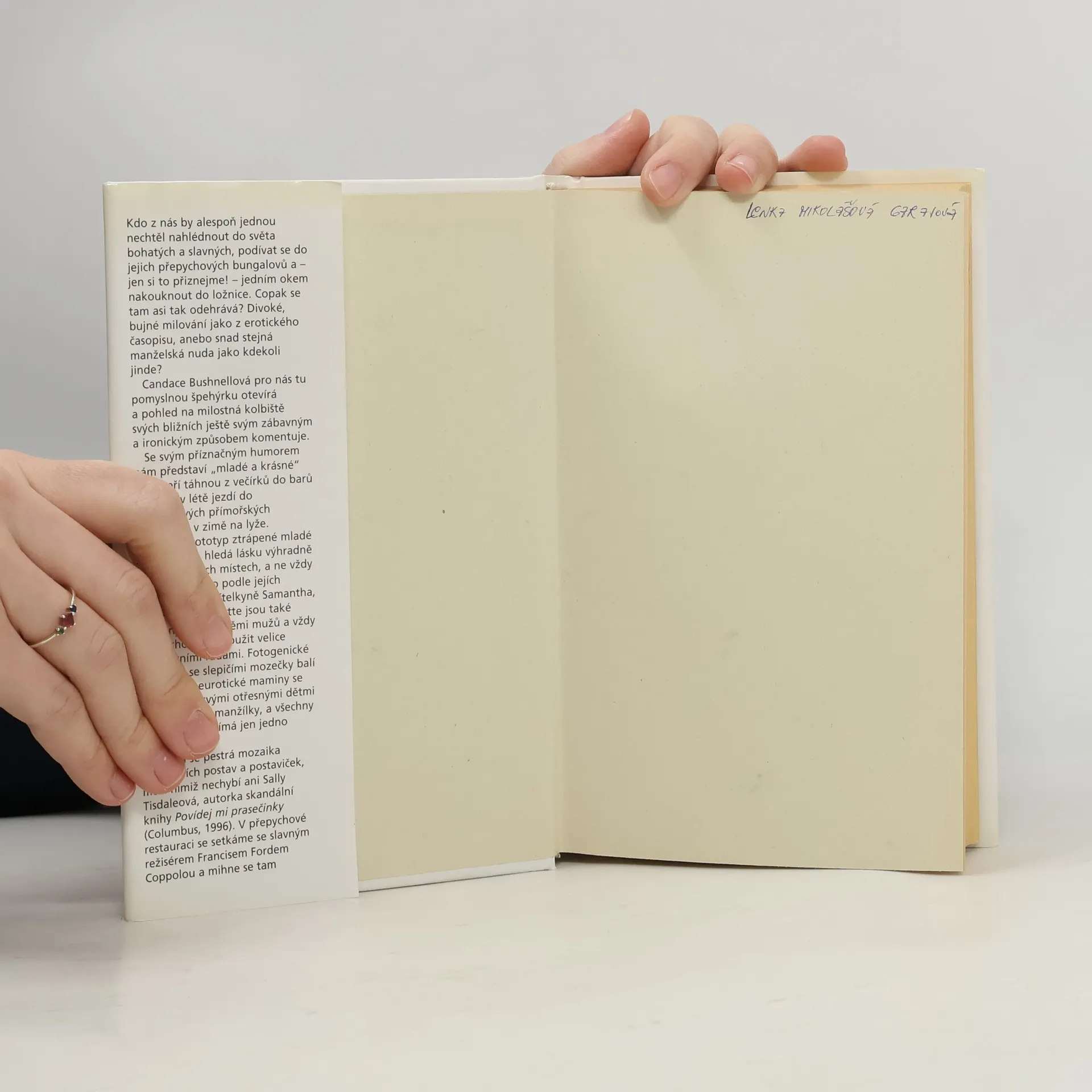 Kdo z nás by alespoň jednou nechtěl nahlédnout do světa bohatých a slavných, podívat se do jejich přepychových bungalovů a – jen si to přiznejme! – jedním okem nakouknout do ložnice. Copak se tam asi tak odehrává? Divoké, bujné milování jako z erotického časopisu, anebo snad stejná manželská nuda jako kdekoli jinde? Candace Bushnellová pro nás tu pomyslnou špehýrku otevírá a pohled na milostná kolbiště svých bližních ještě svým zábavným a ironickým způsobem komentuje. Se svým příznačným humorem nám představí „mladé a krásné“ lidi, kteří táhnou z večírků do barů a klubů, v létě jezdí do přepychových přímořských letovisek a v zimě na lyže. Carrie, prototyp ztrápené mladé spisovatelky, hledá lásku výhradně na nesprávných místech, a ne vždy vychází všechno podle jejích představ. Její přítelkyně Samantha, Miranda a Charlotte jsou také nadšenými lovkyněmi mužů a vždy jsou ochotny posloužit velice konkrétními radami. Fotogenické krasavice se slepičími mozečky balí kdekoho, neurotické maminy se vychloubají svými otřesnými dětmi a příkladnými manžílky, a všechny dohromady zajímá jen jedno jediné – sex.