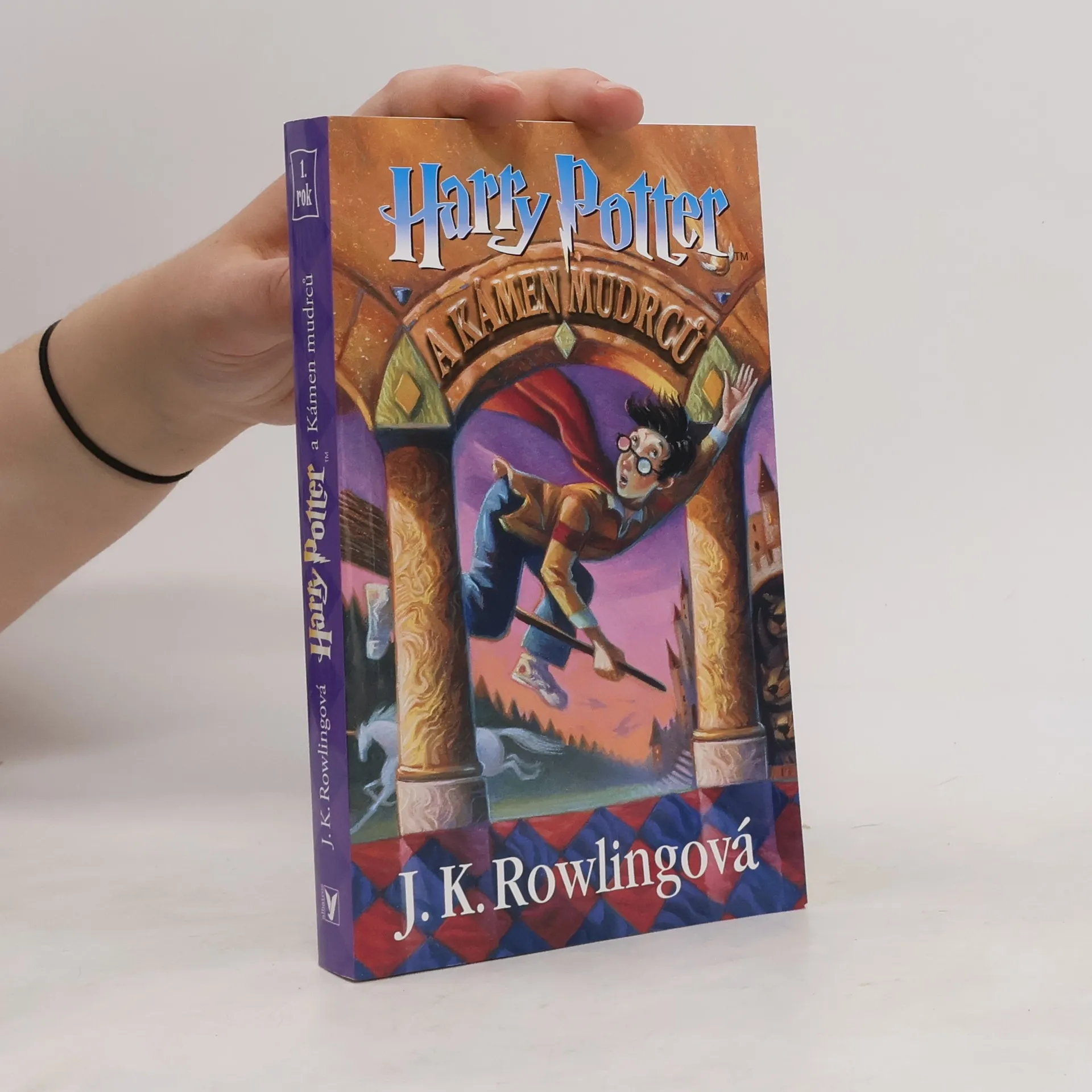 Vzrušující chvíle prožije čtenář s jedenáctiletým Harrym a jeho spolužáky v kouzelnické škole v Bradavicích. První díl fantasy série. Do svých jedenácti let žije Harry v rodině nevlídných, kouzlům zcela vzdálených příbuzných. Netuší, jak se k nim dostal a kdo byli jeho rodiče. Ale pak se začnou objevovat podivní lidé, tajemné dopisy... Harry je nečekaně pozván do úplně jiného světa, do školy, kterou mu bude mnohý čtenář závidět - i když se v ní hemží duchové, obrazy vystupují ze svých rámů, občas se objeví nějaký ten troll nebo tříhlavý Chloupek a oblíbený famfrpál taky není zrovna bezpečná hra. Navíc je třeba zachránit nejen záhadný balíček, ale i čest a slávu Nebelvíru - a to už za trochu toho strachu a rizika určitě stojí.