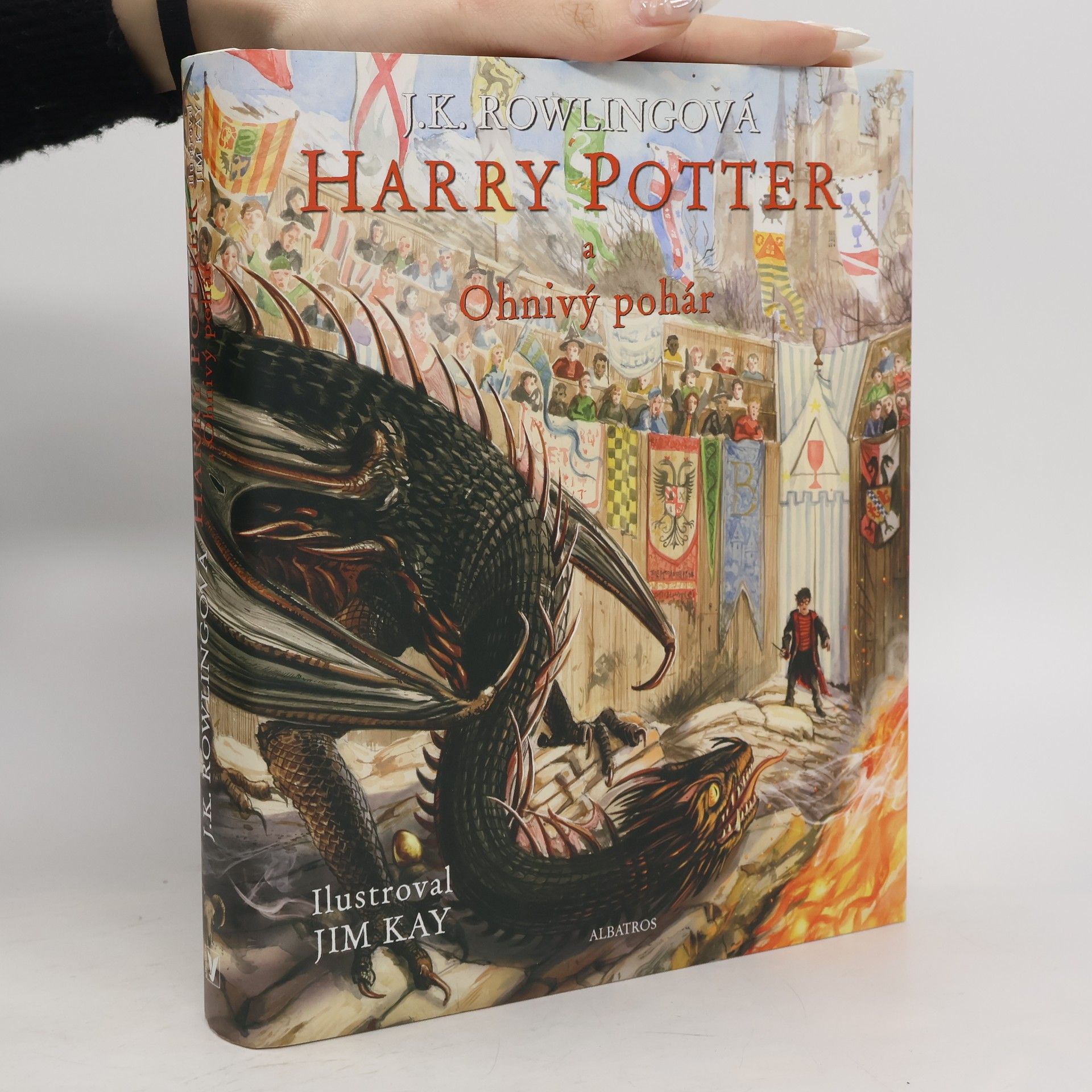 Čtvrté dobrodružství Harryho Pottera v ilustracích Jima Kaye! V Bradavicích se bude konat Turnaj tří kouzelníků. Zúčastnit se ho smí jen studenti, kterým už bylo sedmnáct let, a tak Harry Potter zatím alespoň sní o tom, že turnaj jednou vyhraje. Jenže když o Halloweenu Ohnivý pohár vyřkne své rozhodnutí, Harry s úžasem zjistí, že je mezi vybranými. Čekají ho smrtící úkoly, draci a temní čarodějové, ale s pomocí svých nejlepších přátel Rona a Hermiony to Harry možná… přežije.