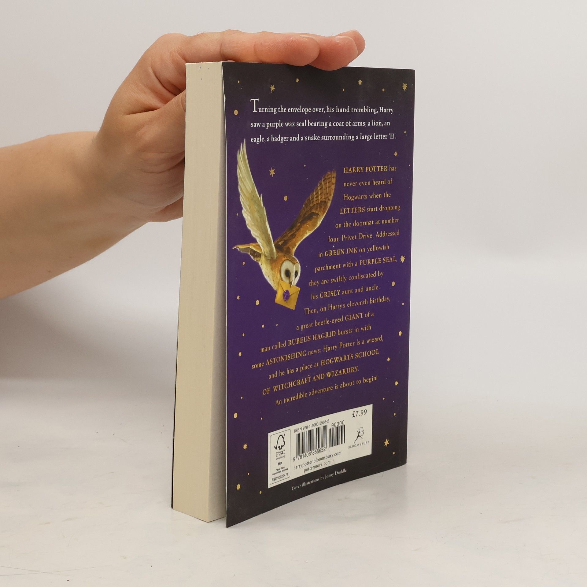 Harry Potter has never even heard of Hogwarts when the letters start dropping on the doormat at number four, Privet Drive. Addressed in green ink on yellowish parchment with a purple seal, they are swiftly confiscated by his grisly aunt and uncle. Then, on Harry's eleventh birthday, a great beetle-eyed giant of a man called Rubeus Hagrid bursts in with some astonishing news: Harry Potter is a wizard, and he has a place at Hogwarts School of Witchcraft and Wizardry. An incredible adventure is about to begin!These new editions of the classic and internationally bestselling, multi-award-winning series feature instantly pick-up-able new jackets by Jonny Duddle, with huge child appeal, to bring Harry Potter to the next generation of readers. It's time to PASS THE MAGIC ON .