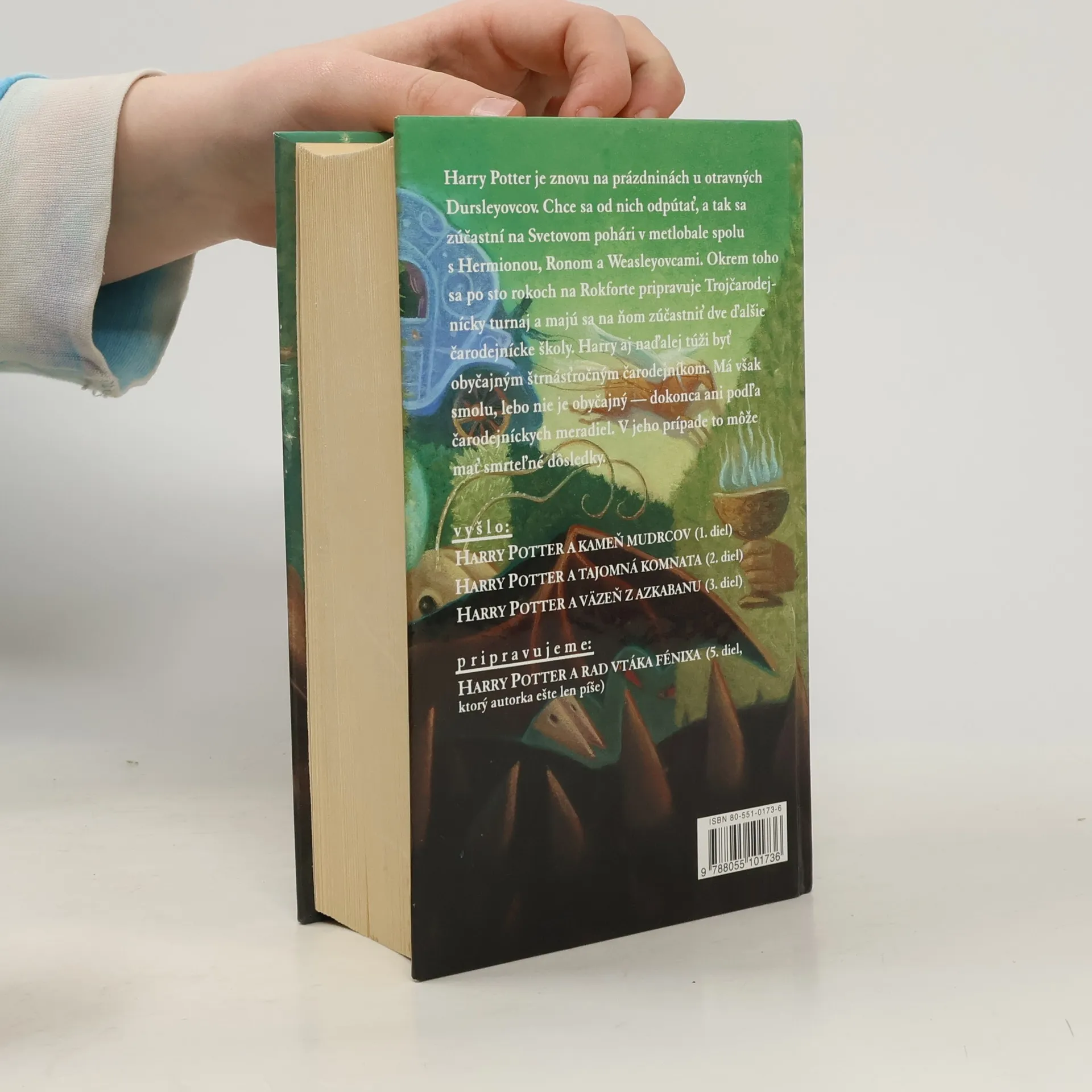 Harry Potter je znovu na prázdninách u otravných Dursleyovcov. Chce sa od nich odpútať, a tak sa zúčastní na Svetovom pohári v metlobale spolu s Hermionou, Ronom a Weasleyovcami. Okrem toho sa po sto rokoch na Rokforte pripravuje Trojčarodejnícky turnaj a majú sa na ňom zúčastniť dve ďalšie čarodejnícke školy. Harry aj naďalej túži byť obyčajným štrnásťročným čarodejníkom. Má však smolu, lebo nie je obyčajný - dokonca ani podľa čarodejníckych meradiel. V jeho prípade to môže mať smrteľné dôsledky...