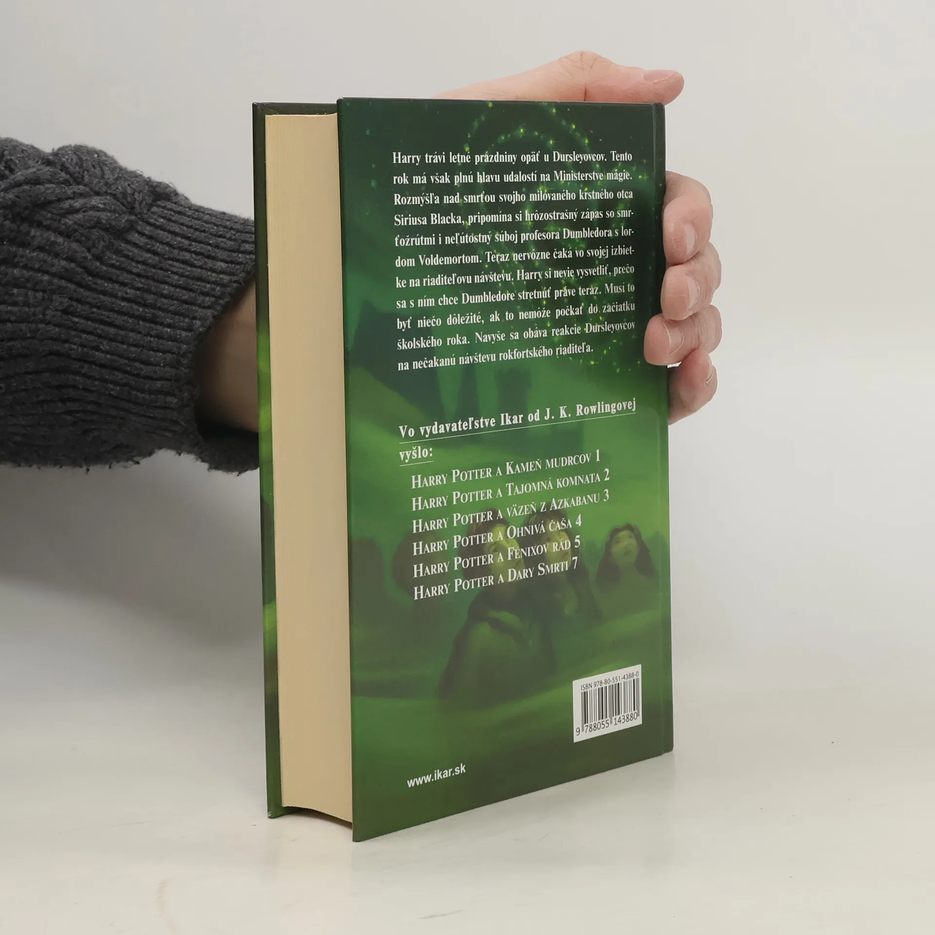 Harry trávi letné prázdniny opäť u Dursleyovcov. Tento rok má však plnú hlavu udalostí na Ministerstve mágie. Rozmýšľa nad smrťou svojho milovaného krstného otca Siriusa Blacka, pripomína si hrôzostrašný zápas so smrťožrútmi i neľútostný súboj profesora Dumbledora s lordom Voldemortom. Teraz nervózne čaká vo svojej izbietke na riaditeľovu návštevu. Harry si nevie vysvetliť, prečo sa s ním chce Dumbledore stretnúť práve teraz. Musí to byť niečo dôležité, ak to nemôže počkať do začiatku školského roka. Navyše sa obáva reakcie Dursleyovcov na nečakanú návštevu rokfortského riaditeľa. Verše prebásnila Jana Kantorová-Báliková.