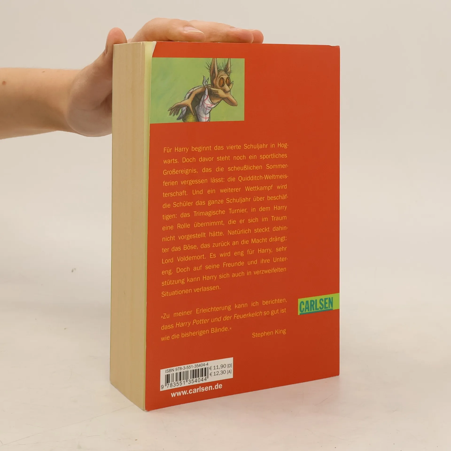 Harrys viertes Schuljahr in Hogwarts beginnt und ein Wettkampf hält die Schüler in Atem: das Trimagische Turnier, in dem Harry eine Rolle übernimmt, die er sich im Traum nicht vorgestellt hätte. Natürlich steckt dahinter das Böse, das zurück an die Macht drängt: Lord Voldemort. Es wird eng für Harry. Doch auf seine Freunde und ihre Unterstützung kann er sich auch in verzweifelten Situationen verlassen. Dies ist der vierte Band der international erfolgreichen Harry-Potter-Serie, die Generationen geprägt hat. Alle Bände der Serie: Harry Potter und der Stein der WeisenHarry Potter und die Kammer des SchreckensHarry Potter und der Gefangene von AskabanHarry Potter und der FeuerkelchHarry Potter und der Orden des PhönixHarry Potter und der HalbblutprinzHarry Potter und die Heiligtümer des Todes Die Harry-Potter-Serie ist abgeschlossen.