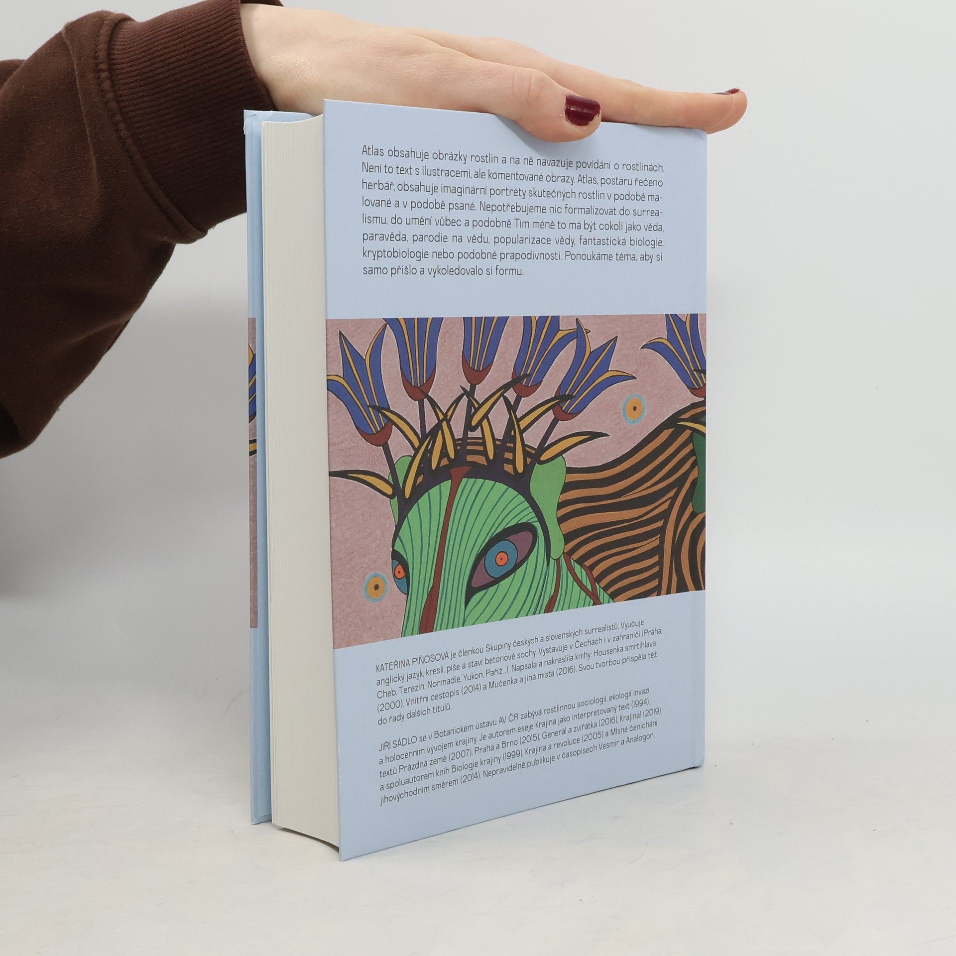 Kniha botanika Jiřího Sádla a malířky Kateřiny Piňosové přibližuje čtenářům svět květin, který se před nimi rozvíjí jaro co jaro, a stejně tak i ten, o němž mají jen matnou představu. V každém případě jde o svět, před kterým je dobré se mít na pozoru. Jakkoli se může zdát, žestránky přetékají bezuzdnou poezií či imaginací, opak je pravdou: I ty nejvýstřednější a na první pohled nejméně pravděpodobné pasáže jsou popisem holé skutečnosti. Skutečnosti, na kterou je – jako vždy – veškerá fantazie krátká. „Atlas obsahuje obrázky rostlin a na ně navazuje povídání o rostlinách. Není to text s ilustracemi, ale komentované obrazy. Atlas, postaru řečeno herbář, obsahuje imaginární portréty skutečných rostlin v podobě malované a v podobě psané. Nepotřebujeme nic formalizovat do surrealismu, do umění vůbec apod. Tím méně to má být cokoli jako věda, paravěda, parodie na vědu, popularizace vědy, fantastická biologie, kryptobiologie nebo podobné prapodivnosti. Ponoukáme téma, aby si samo přišlo a vykoledovalo si formu. Dokonce ho nechceme mít pod kontrolou ani pak. Ukáže, co umí.“