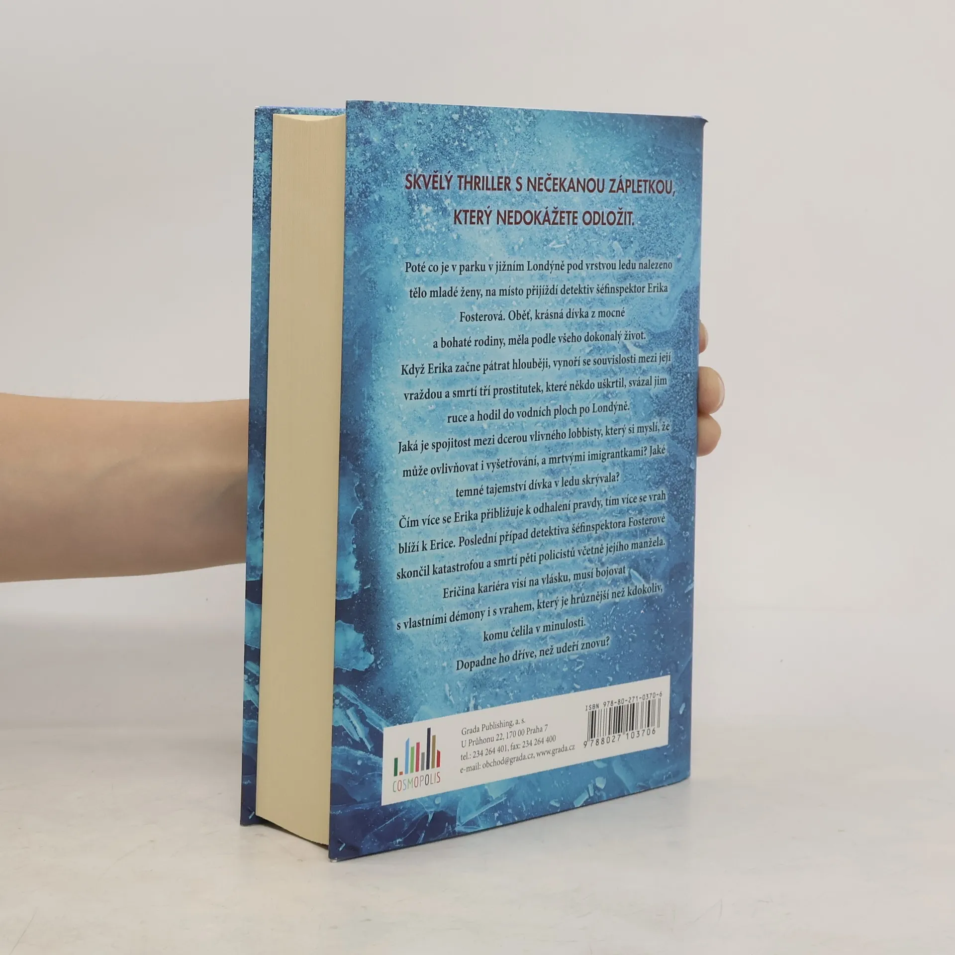 Poté co je v parku v jižním Londýně pod vrstvou ledu nalezeno tělo mladé ženy, na místo přijíždí detektiv šéfinspektor Erika Fosterová. Oběť, krásná dívka z mocné a bohaté rodiny, měla podle všeho dokonalý život. Když Erika začne pátrat hlouběji, vynoří se souvislosti mezi její vraždou a smrtí tří prostitutek, které někdo uškrtil, svázal jim ruce a hodil do vodních ploch po Londýně. Jaká je spojitost mezi dcerou vlivného lobbisty, který si myslí, že může ovlivňovat i vyšetřování, a mrtvými imigrantkami? Jaké temné tajemství dívka v ledu skrývala? Čím více se Erika přibližuje k odhalení pravdy, tím více se vrah blíží k Erice. Poslední případ detektiva šéfinspektora Fosterové skončil katastrofou a smrtí pěti policistů včetně jejího manžela. Eričina kariéra visí na vlásku, musí bojovat s vlastními démony i s vrahem, který je hrůznější než kdokoliv, komu čelila v minulosti. Dopadne ho dříve, než udeří znovu?