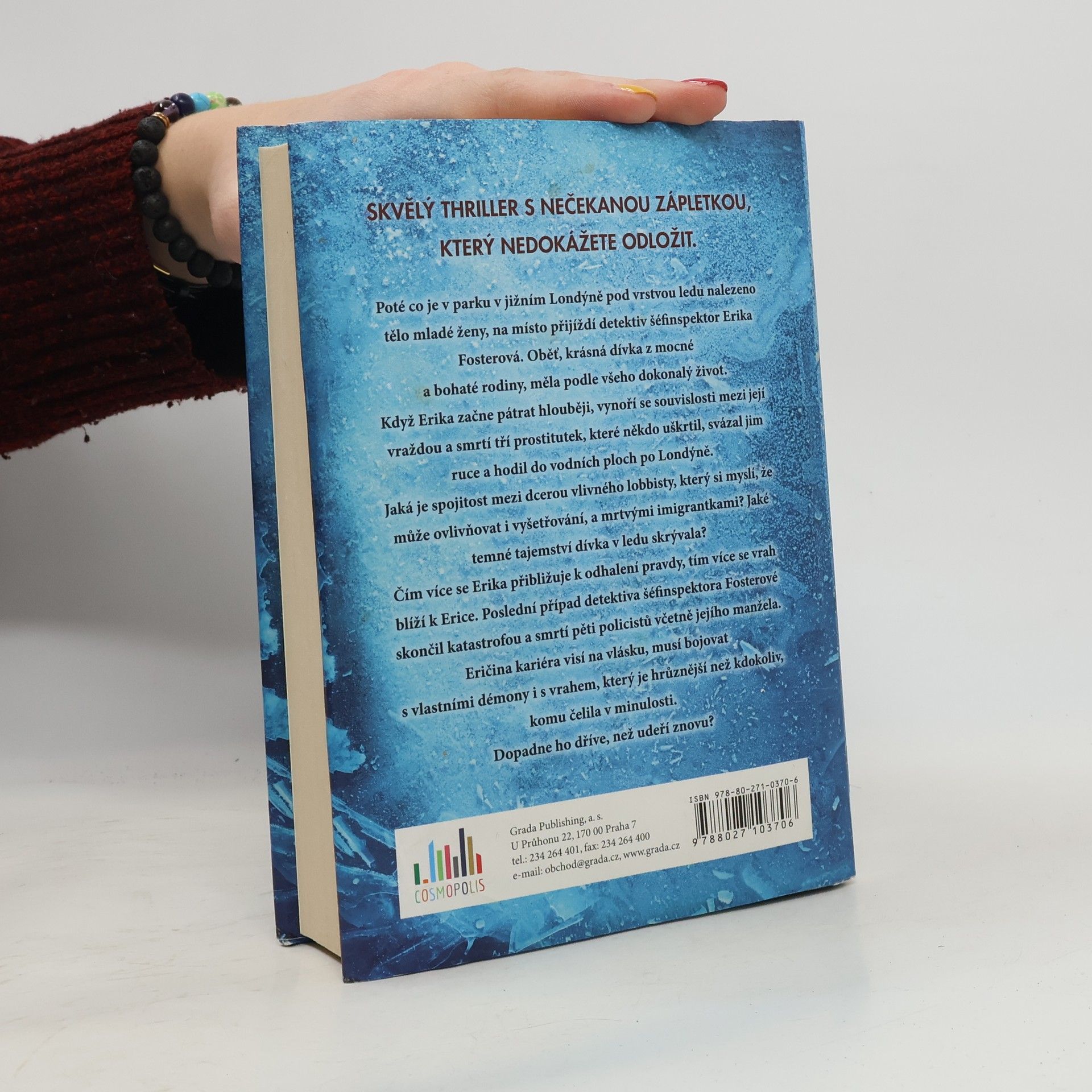 Poté co je v parku v jižním Londýně pod vrstvou ledu nalezeno tělo mladé ženy, na místo přijíždí detektiv šéfinspektor Erika Fosterová. Oběť, krásná dívka z mocné a bohaté rodiny, měla podle všeho dokonalý život. Když Erika začne pátrat hlouběji, vynoří se souvislosti mezi její vraždou a smrtí tří prostitutek, které někdo uškrtil, svázal jim ruce a hodil do vodních ploch po Londýně. Jaká je spojitost mezi dcerou vlivného lobbisty, který si myslí, že může ovlivňovat i vyšetřování, a mrtvými imigrantkami? Jaké temné tajemství dívka v ledu skrývala? Čím více se Erika přibližuje k odhalení pravdy, tím více se vrah blíží k Erice. Poslední případ detektiva šéfinspektora Fosterové skončil katastrofou a smrtí pěti policistů včetně jejího manžela. Eričina kariéra visí na vlásku, musí bojovat s vlastními démony i s vrahem, který je hrůznější než kdokoliv, komu čelila v minulosti. Dopadne ho dříve, než udeří znovu?