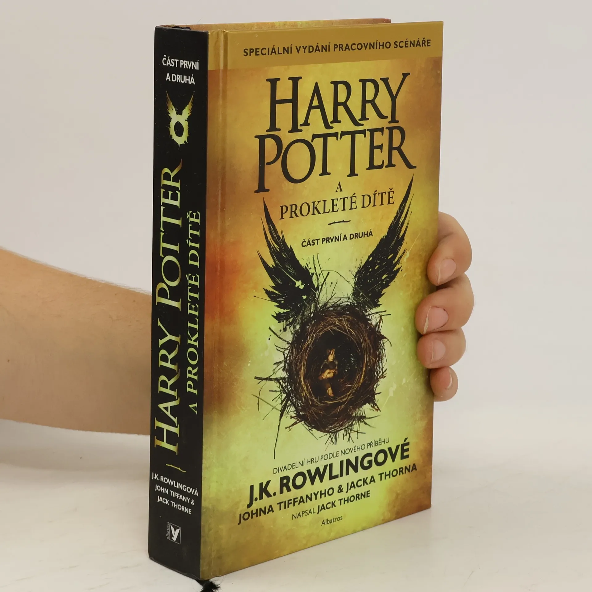 Speciální vydání pracovního scénáře. Harry Potter to nikdy neměl snadné a teď, jako přepracovaný zaměstnanec Ministerstva kouzel, manžel a otec tří školáků, to má ještě těžší. Potýká se s minulostí, která nechce zůstat tam, kam patří, a jeho nejmladší syn Albus se mezitím musí prát s tíhou rodinného dědictví, o které nikdy nestál. Minulost a současnost se čím dál hrozivěji prolínají a otec i syn zjišťují nepříjemnou pravdu: temnota někdy vyvěrá z nečekaných míst. Divadelní hru Harry Potter a prokleté dítě na námět J.K. Rowlingové, Johna Tiffanyho a Jacka Thornea napsal Jack Thorne. Je osmým příběhem ze série o Harrym Potterovi a zároveň prvním, který se oficiálně dočkal divadelního zpracování.