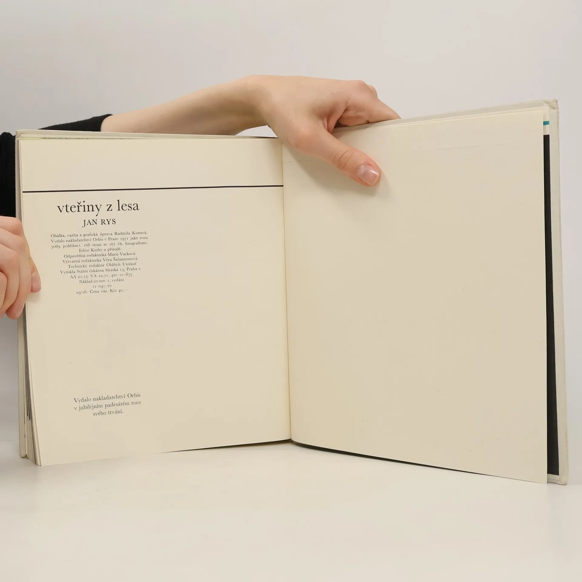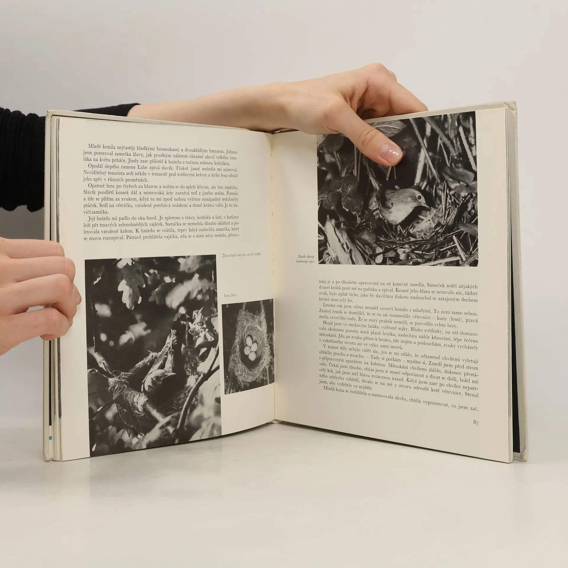 Sto šedesát sedm černobílých snímků zastihuje lesní obyvatele - zvěř i ptactvo - v důvěrných chvílích vyznačených bezprostředností odpočinku, hledání potravy, hry nebo zápasu, kdy oběť objektivu nevěděla o svém lapení. Některé fotografie ukazují také typické známky jejich předchozí přítomnosti. Text prozrazuje bedlivého a všímavého pozorovatele přírodního bohatství.
