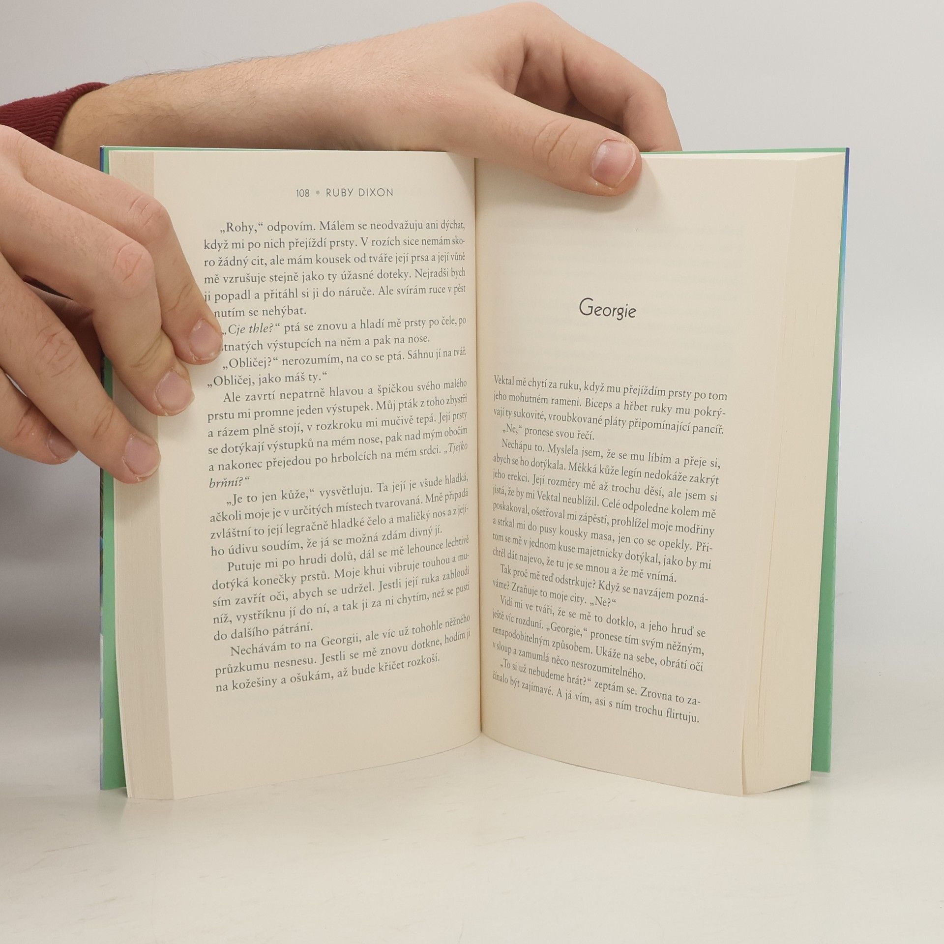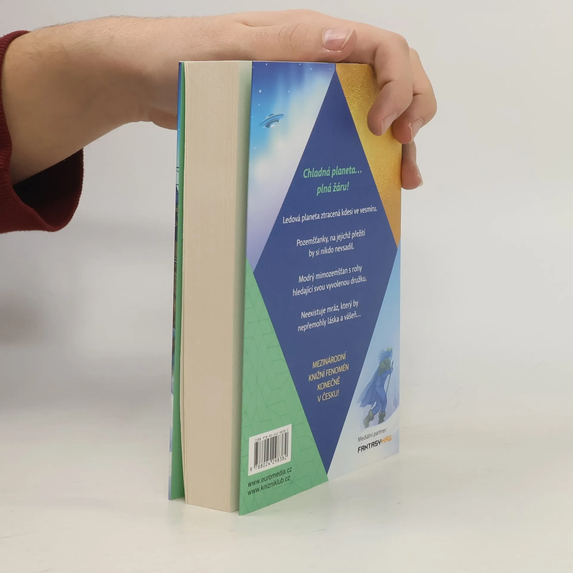 První román erotické sci-fi řady americké autorky. Co může být příjemnějšího než se na ledové planetě přitulit k velkému, hřejivému mimozemšťanovi? Doplněno o bonusovou novelu. Nejspíš si myslíte, že být unesena mimozemšťany je to nejhorší, co se mi mohlo přihodit. Tak to se pletete, protože tihle mimozemšťané měli potíže s motorem, a tudíž náklad lidských žen - včetně mě - vysadili na ledové planetě. Žádná z nás není k životu v téhle bezútěšné, mrazivé pustině vybavená. Ale protože si mě v podstatě zvolily za svou vedoucí, nezbývá mi než se vydat do sněhu hledat pomoc. A taky že ji najdu. U velikého, modrého mimozemšťana s rohy, který se mi představí poněkud nezvykle. Tvrdí, že jsem jeho družka, jeho vyvolená - a že to předení v jeho hrudi vyvolává moje přítomnost. Pomůže mně a mým lidem přežít, ale má to jeden drobný háček. Nejsem si jistá, že mě nechá odejít. Nakladatelská anotace.