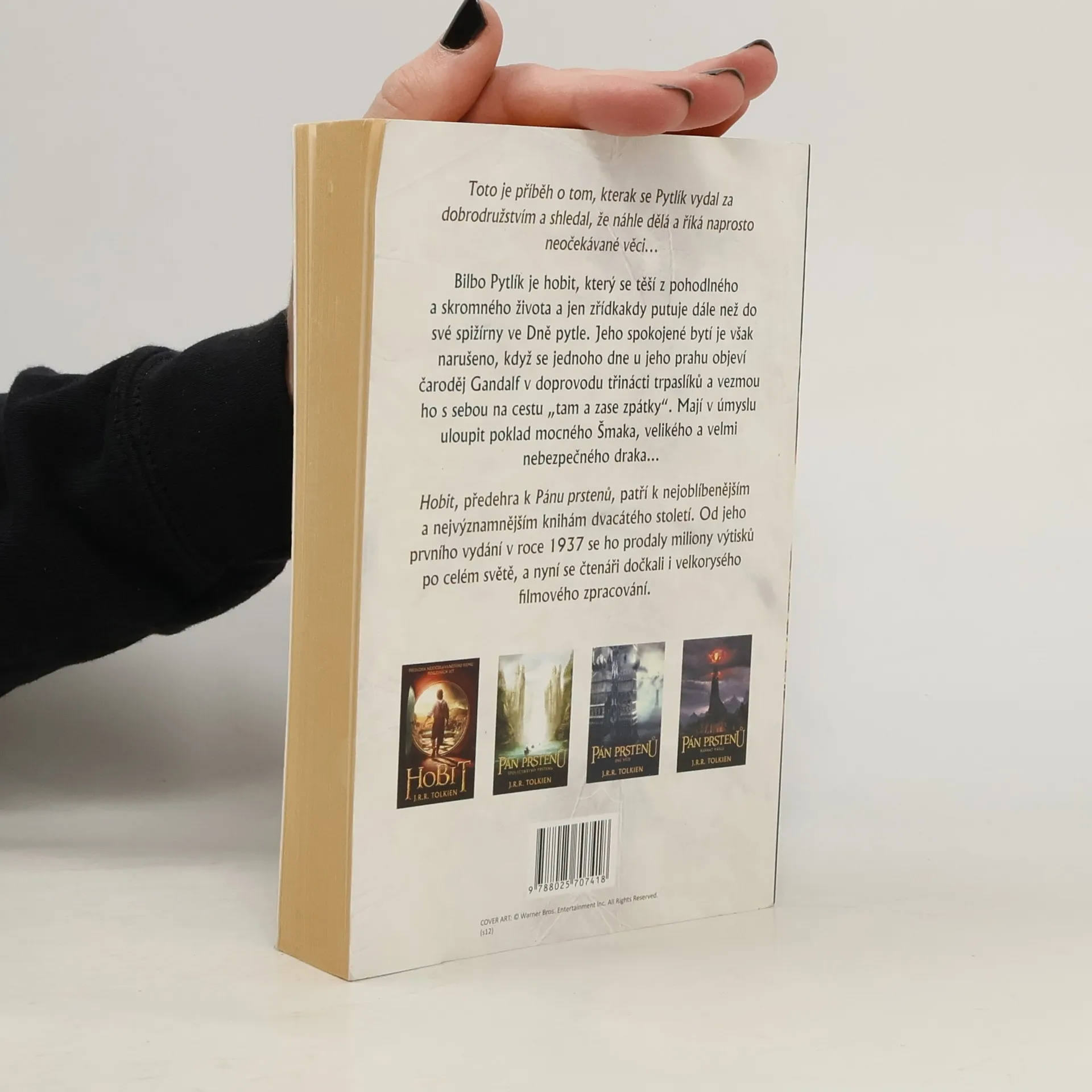 Kniha s nezvyklým názvem byla vydána v roce 1937, a to bez většího zájmu. Ani autor netušil, že se stane vstupní branou do fascinujícího světa Středozemě, který se o dvacet let později stane dějištěm mytického souboje Dobra a Zla v eposu o Prstenu moci. Ten si získal miliony oddaných čtenářů, zejména mezi mladými lidmi, a díky němu se dostalo cti i dříve opomíjenému dílu. Svět Středozemě se během let vyvinul, získal celistvější podobu, historii, mytologii, jazyky a písně, oživily ho národy různých plemen. U kořenů tohoto tajemného světa stojí příběh o hobitovi jménem Bilbo, jehož život rozvrátí kouzelník Gandalf. Spolu s družinou trpaslíků ho pošle na výpravu, na níž ho čeká dobrodružství mezi obry, elfy a skřety. Malý, nenápadný hobit na této cestě nejen získá bohatství, ale také překvapivě prokáže, že není tak bezvýznamný – zachrání své druhy, unikne nepřátelům, oklame draka a zažehná hrozící válku. Barvité vyprávění, které obstojí jako samostatný příběh, nese poselství, že každý, i ten zdánlivě méně schopný, má své místo a příležitost ukázat, co v něm skutečně je.
