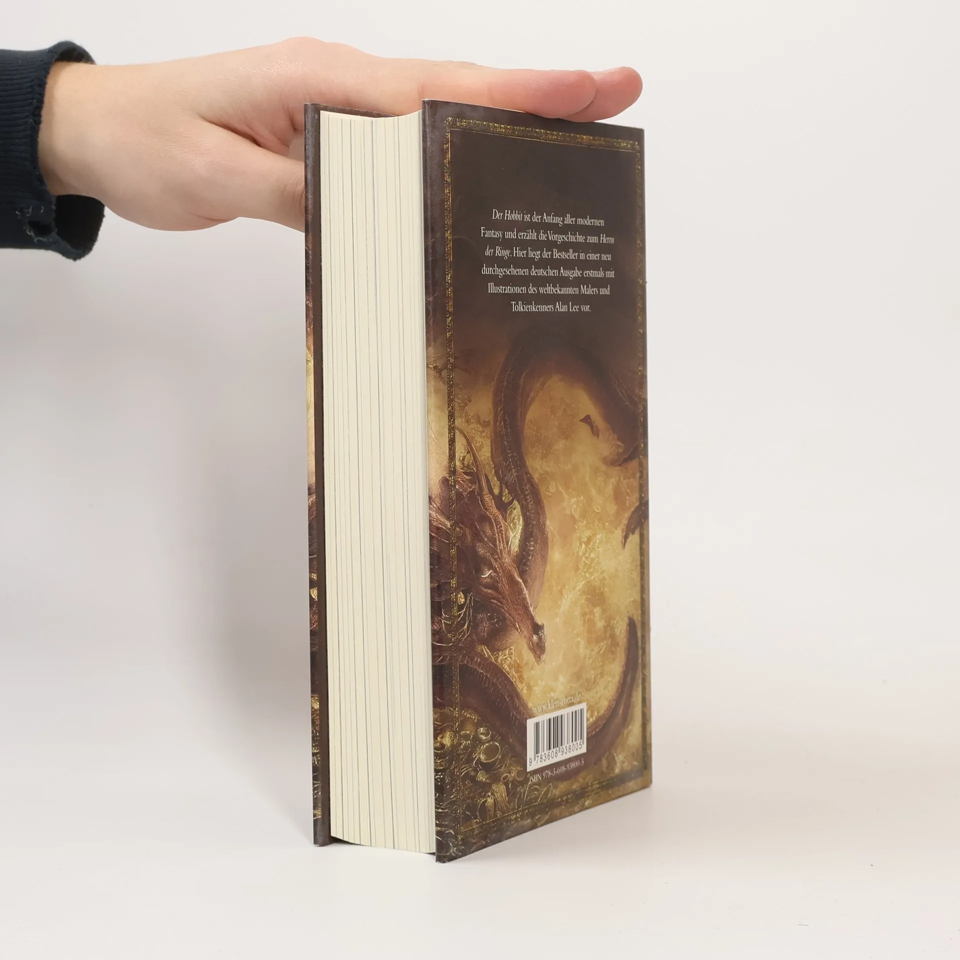 Ohne große Ansprüche lebt Bilbo Beutlin im Auenland, bis er von dem Zauberer Gandalf und einer Horde Zwerge aus seiner Beschaulichkeit und seinem gemütlichen Alltag gerissen wird. Auf einmal findet er sich mitten in einem Abenteuer wieder, das ihn zu dem riesigen und gefährlichen Drachen Smaug führt, der einen kostbaren Schatz in seinen Besitz gebracht hat und eifersüchtig hütet ... Mit 26 Farbtafeln und 38 Schwarzweißzeichnungen des bekannten Tolkienkünstlers Alan Lee, der für den Herr-der-Ringe-Film maßgeblich die Visualisierung von Tolkiens Welt und Figuren gestaltet hat.