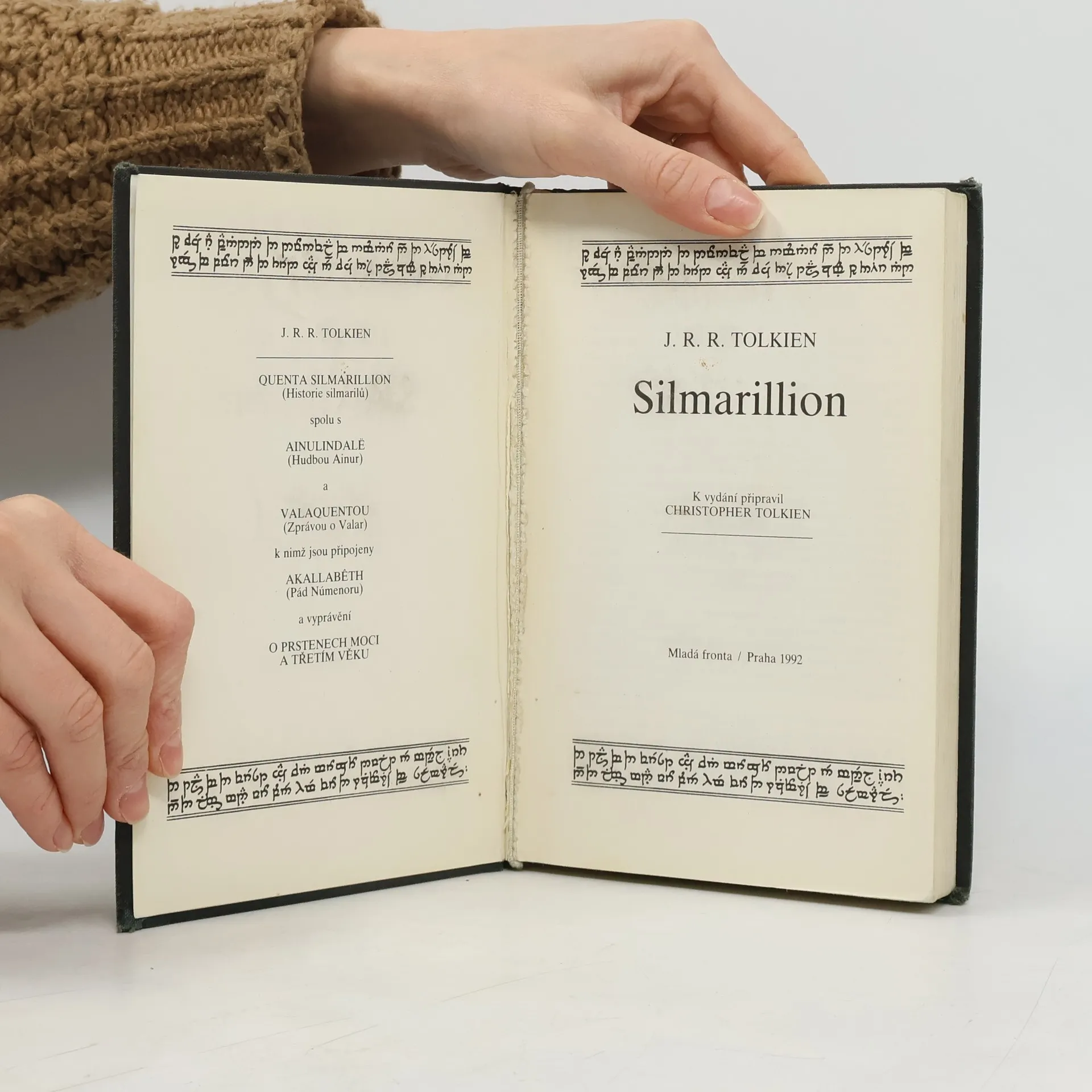 Tolkienův Silmarillion popisuje První věk světa – jeho samozřejmou součástí je tedy vyprávění o vzniku Středozemě, o její mytologii, nejstarší historii a v neposlední řadě také o národech, jež ji obývaly v dobách předcházejících ději trilogie Pán prstenů. K vydání připravil Christopher Tolkien.