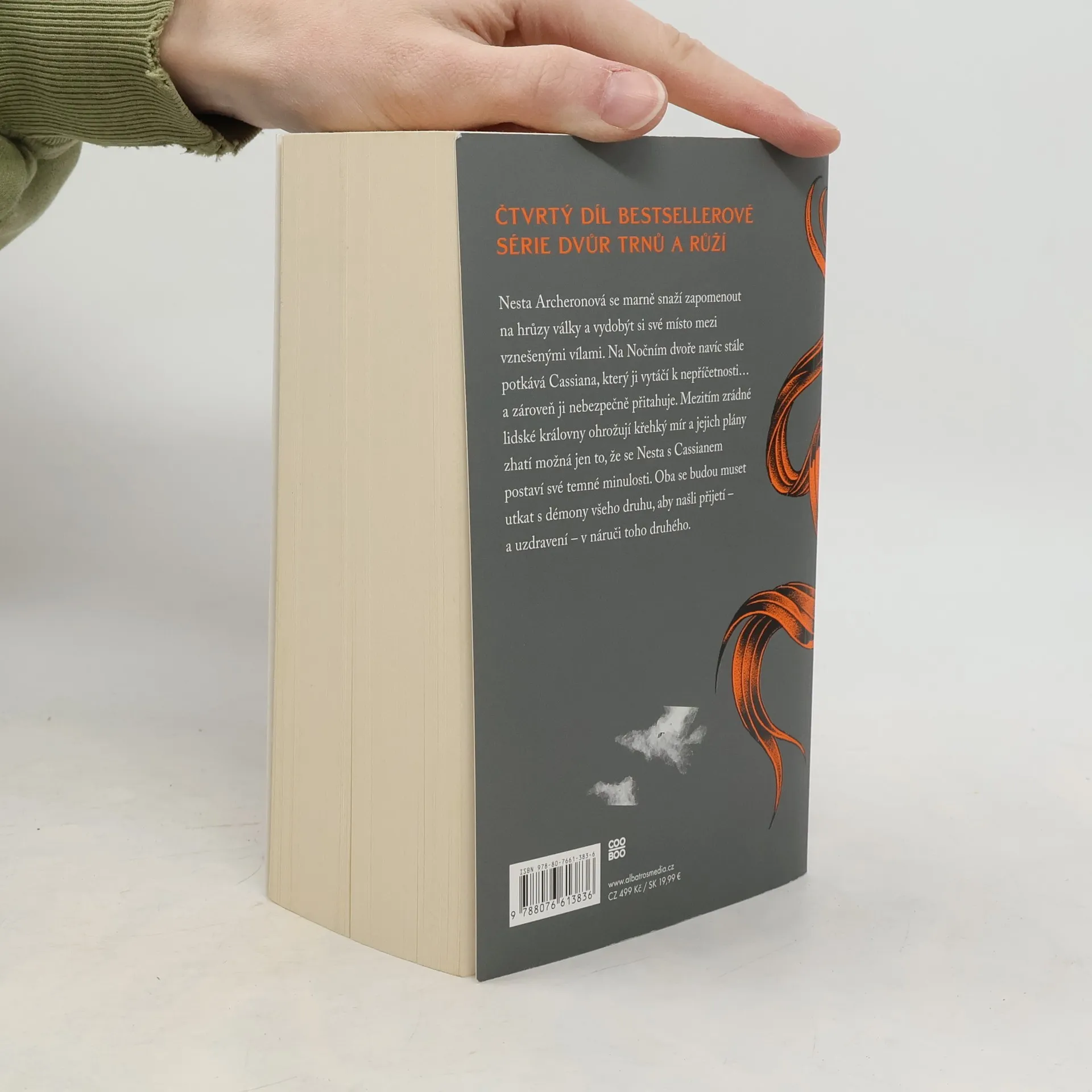 Čtvrtý díl bestsellerové série Dvůr trnů a růží Nesta Archeron se marně snaží zapomenout na hrůzy války a vydobýt si své místo mezi vznešenými vílami. Na Nočním dvoře navíc stále potkává Cassiana, který ji přivádí k zuřivosti… a zároveň ji nebezpečně přitahuje. Mezitím zrádné lidské královny ohrožují křehký mír a jejich plány zhatí možná jen to, že se Nesta s Cassianem postaví své temné minulosti. Oba se budou muset utkat s démony všeho druhu, aby našli přijetí – a uzdravení – v náruči toho druhého.