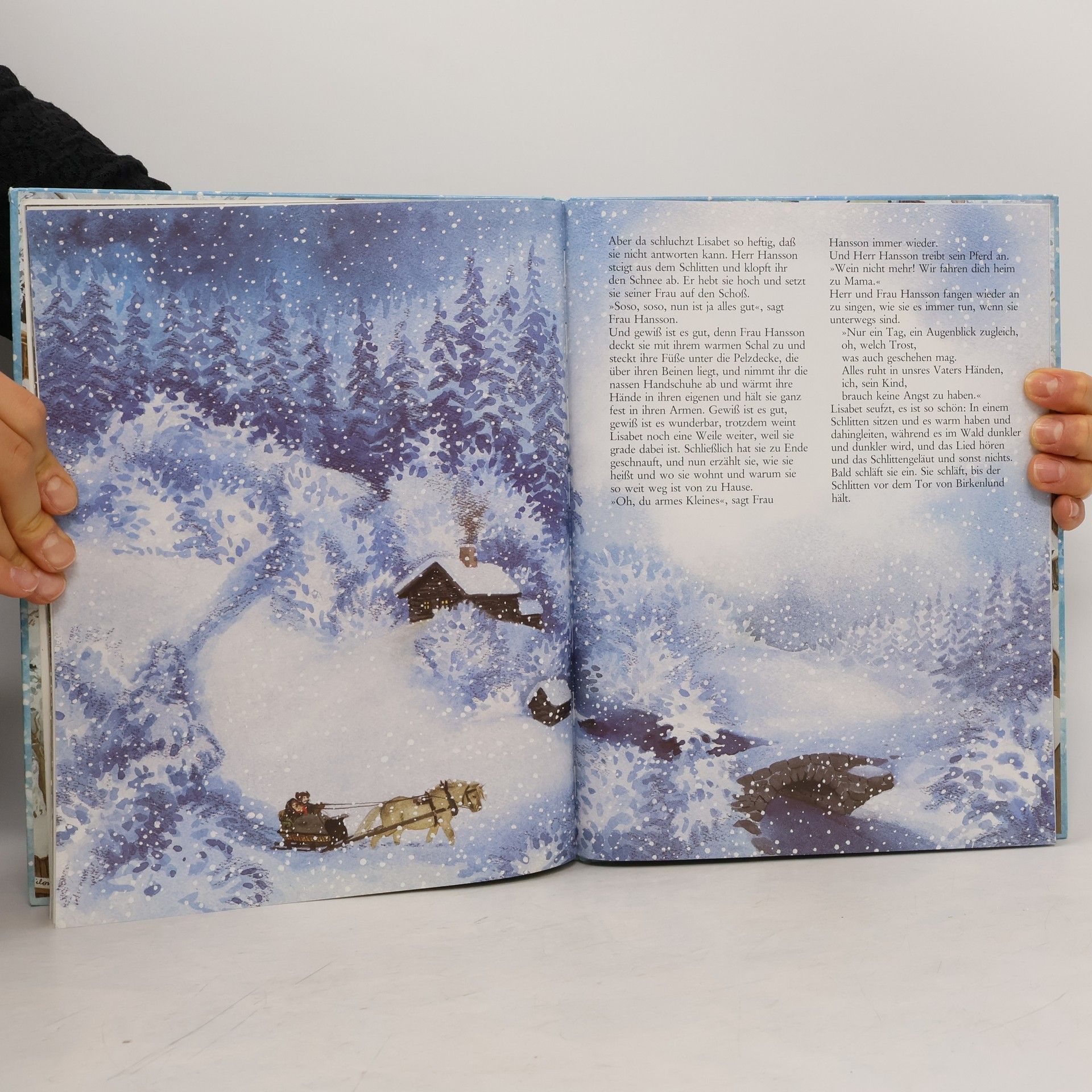Maditas kleine Schwester Lisabet möchte, wie Gustav, hinten auf den Kufen eines Pferdeschlittens stehend, rasant dahingleiten. Unbemerkt vom Besitzer besteigt Lisabet einen Schlitten. (ab 4)