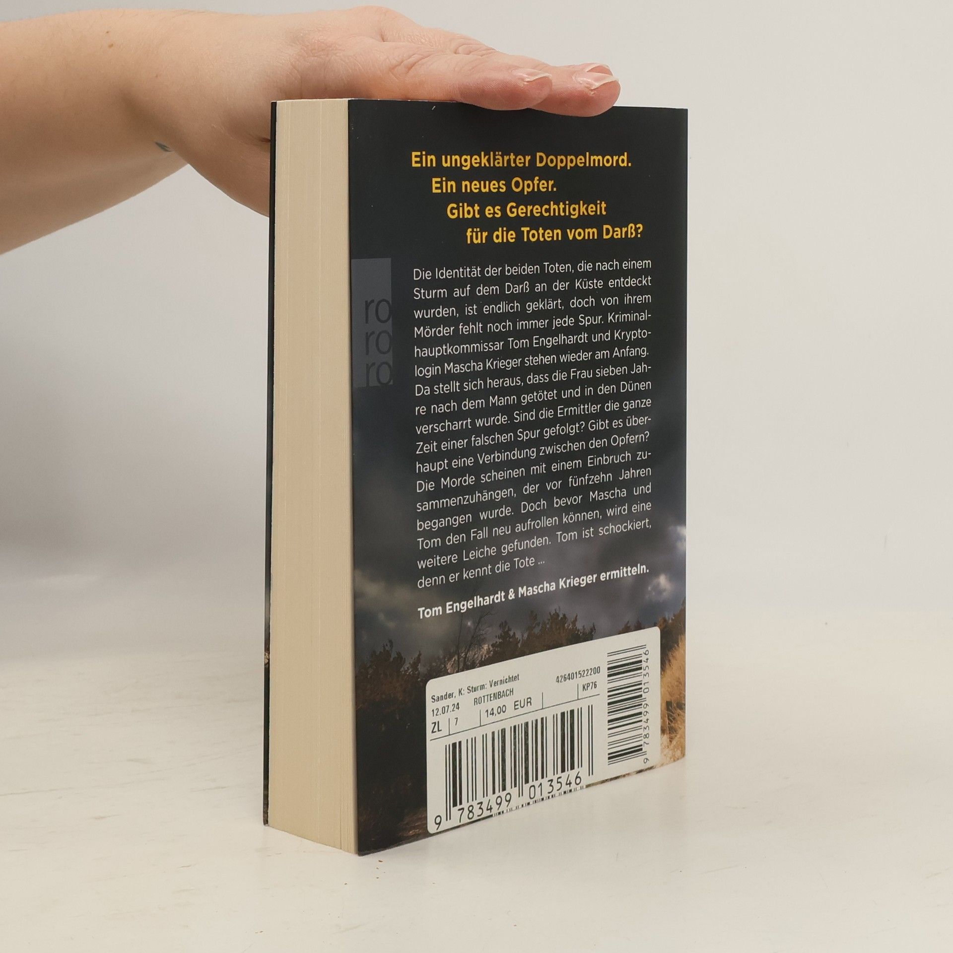 Die Identität der beiden Toten, die nach einem Sturm auf dem Darß an der Küste entdeckt wurden, ist endlich geklärt, doch von ihrem Mörder fehlt nach wie vor jede Spur. Kriminalhauptkommissar Tom Engelhardt und Kryptologin Mascha Krieger stehen wieder am Anfang. Da stellt sich heraus, dass die Frau sieben Jahre nach dem Mann getötet und in den Dünen verscharrt wurde. Sind die Ermittler die ganze Zeit einer falschen Spur gefolgt? Gibt es überhaupt eine Verbindung zwischen den Opfern? Die Morde scheinen mit einem Einbruch zusammenzuhängen, der vor fünfzehn Jahren begangen wurde. Doch bevor Mascha und Tom den Fall neu aufrollen können, wird nach einem weiteren Unwetter eine Leiche gefunden. Tom ist geschockt, denn er kennt die Tote …