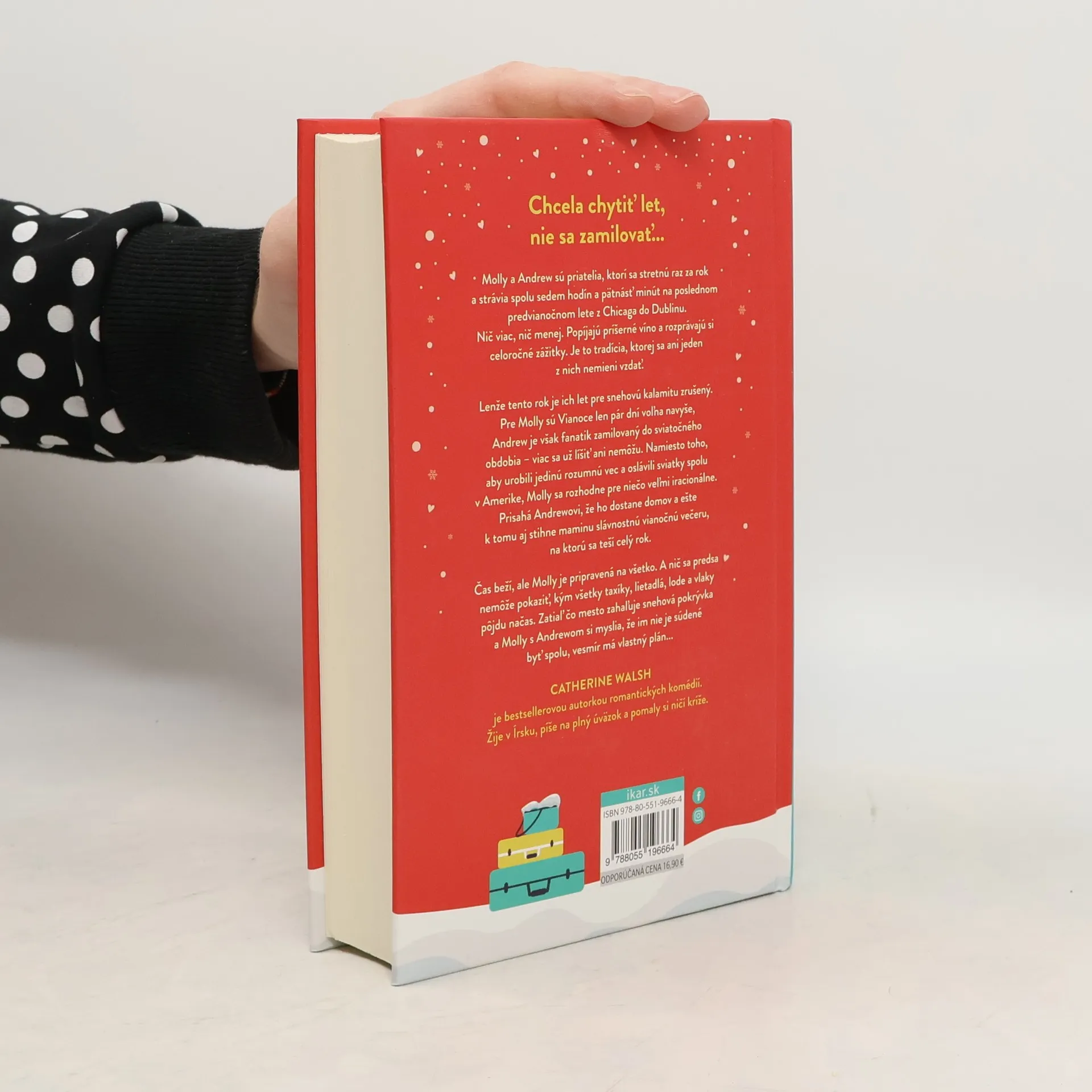 Chcela chytiť let, nie sa zamilovať... Molly a Andrew sú priatelia, ktorí sa stretnú raz za rok a strávia spolu sedem hodín a pätnásť minút na poslednom predvianočnom lete z Chicaga do Dublinu. Nič viac, nič menej. Popíjajú príšerné víno a vymieňajú si celoročné zážitky. Je to tradícia, ktorej sa ani jeden z nich nemieni vzdať. Lenže tento rok je ich let pre snehovú kalamitu zrušený. Pre Molly sú Vianoce len pár dní voľna navyše, Andrew je však hotový fanatik zamilovaný do sviatočného obdobia – viac sa už líšiť ani nemôžu. Namiesto toho, aby urobili jedinú rozumnú vec a oslávili sviatky spolu v Amerike, Molly sa rozhodne pre niečo veľmi hlúpe. Priam iracionálne. Prisahá Andrewovi, že ho dostane domov a ešte k tomu aj stihne mamkinu slávnostnú vianočnú večeru, na ktorú sa teší celý rok. Čas beží, ale Molly má v zálohe vždy nový plán. A nič sa predsa nemôže pokaziť, kým všetky taxíky, lietadlá, lode a vlaky pôjdu načas. Zatiaľ čo na mesto padá snehová pokrývka a Molly s Andrewom si myslia, že im nie je súdené byť spolu, vesmír má vlastný plán...
