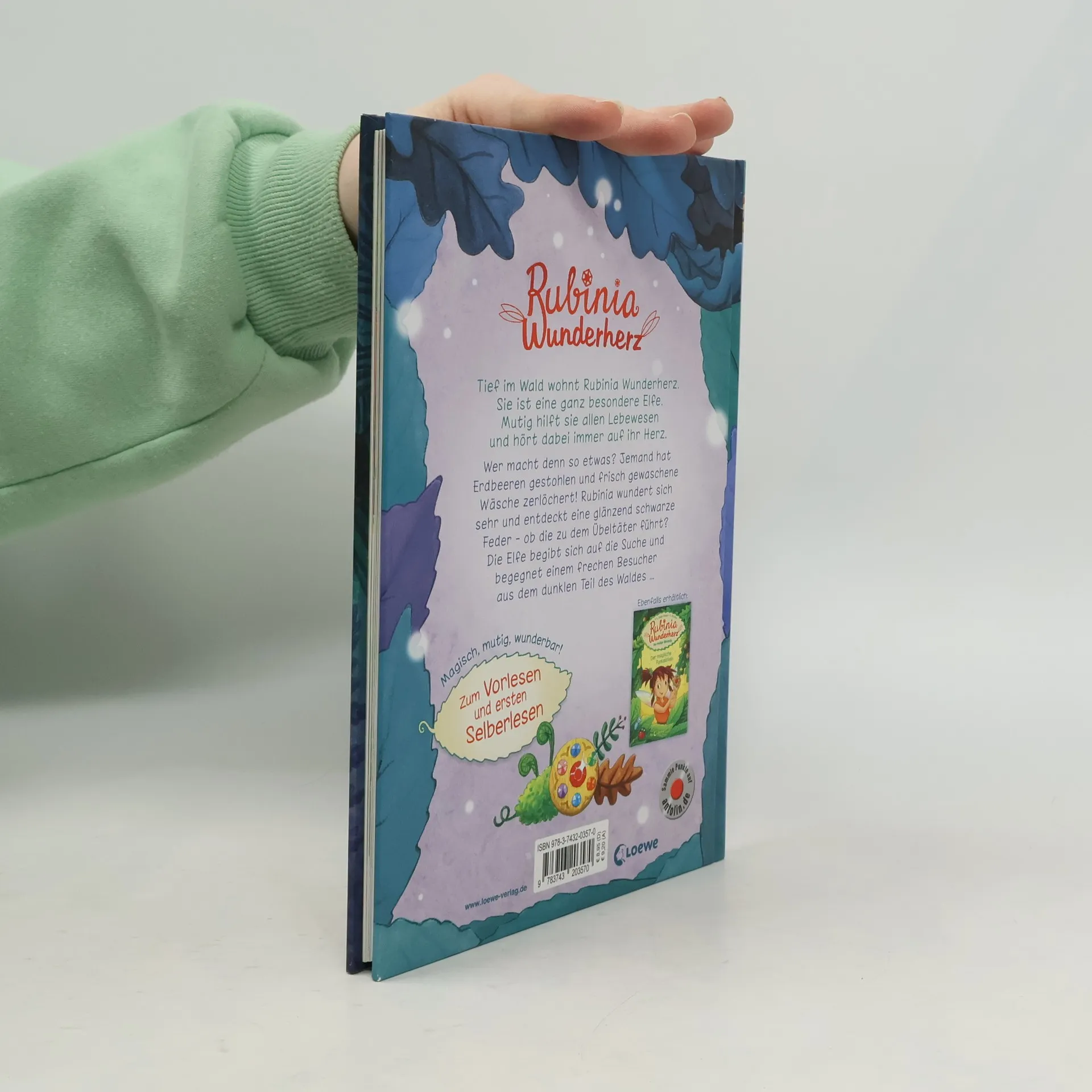 Magisch, mutig, wunderbar! Wer macht denn so etwas? Jemand hat Erdbeeren gestohlen und frisch gewaschene Wäsche zerlöchert! Rubinia wundert sich sehr und entdeckt eine glänzend schwarze Feder – ob die sie zu dem Übeltäter führt? Die Elfe macht sich auf die Suche und begegnet einem frechen Besucher aus dem dunklen Teil des Waldes … In der Reihe Rubinia Wunderherz, die mutige Waldelfe von Erfolgsautorin Karen Christine Angermayer dreht sich alles um eine kleine Waldelfe, die immer für ihre Freunde und alle Waldtiere , die Natur , Bäume, Pflanzen und Elfen im Wald da ist. Mit einem Hauch von Magie und viel Mut löst sie alle Probleme. Ein Buch mit vielen bunten Bildern von Elke Broska, das geeignet ist für Mädchen und Jungen zum ersten Lesen ab 7 Jahren und zum Vorlesen für Kinder ab 5 Jahren . Der Titel ist bei Antolin gelistet.