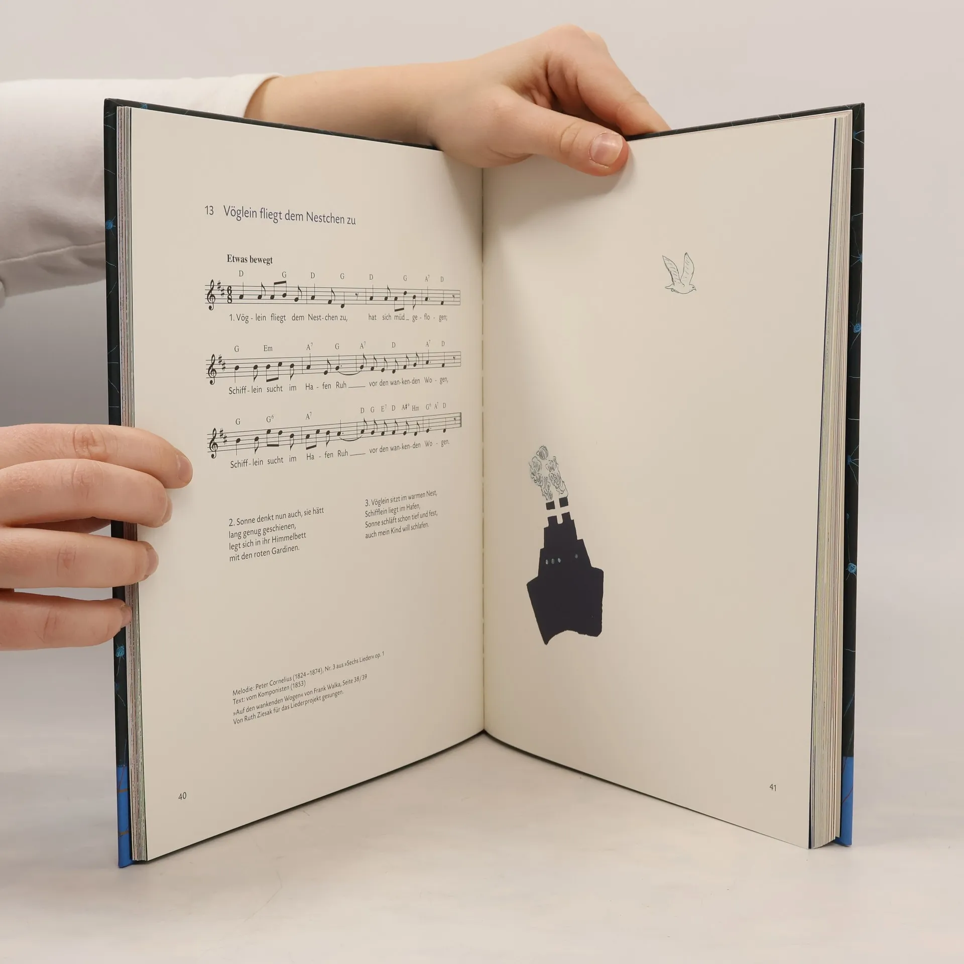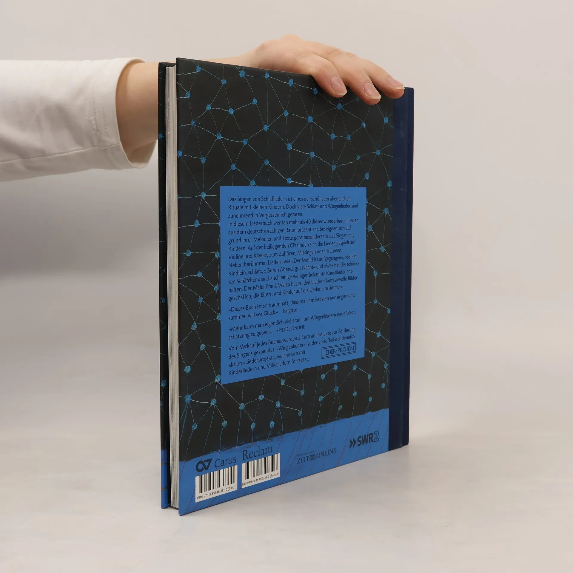 Wiegenlieder bilden oft die ersten musikalischen Eindrücke des Kindes und tragen in besonderem Maße zu seiner Entwicklung bei. Um den Reichtum an Wiegenliedern der deutschen Musikkultur zugänglich zu machen, ist diese wunderbare Sammlung entstanden: 42 der schönsten Wiegen- und Schlaflieder, vom Volkslied bis zum einfachen Kunstlied mit Text, Melodie und Harmonien. Abgestimmt auf den Inhalt der Wiegenlieder hat der Stuttgarter Künstler Frank Walka das Buch wunderschön illustriert. Seine großformatigen Bilder sind wie die Lieder selbst - mal verträumt, mal lustig, mal ernst, mal realistisch. Das Projekt wird vom SWR und der ZEIT begleitet, die sich über mehrere Wochen redaktionell des Themas "Singen mit Kindern" annimmt. Ein besonders schöner Band - sehr gern empfohlen. (S. Gülck)
