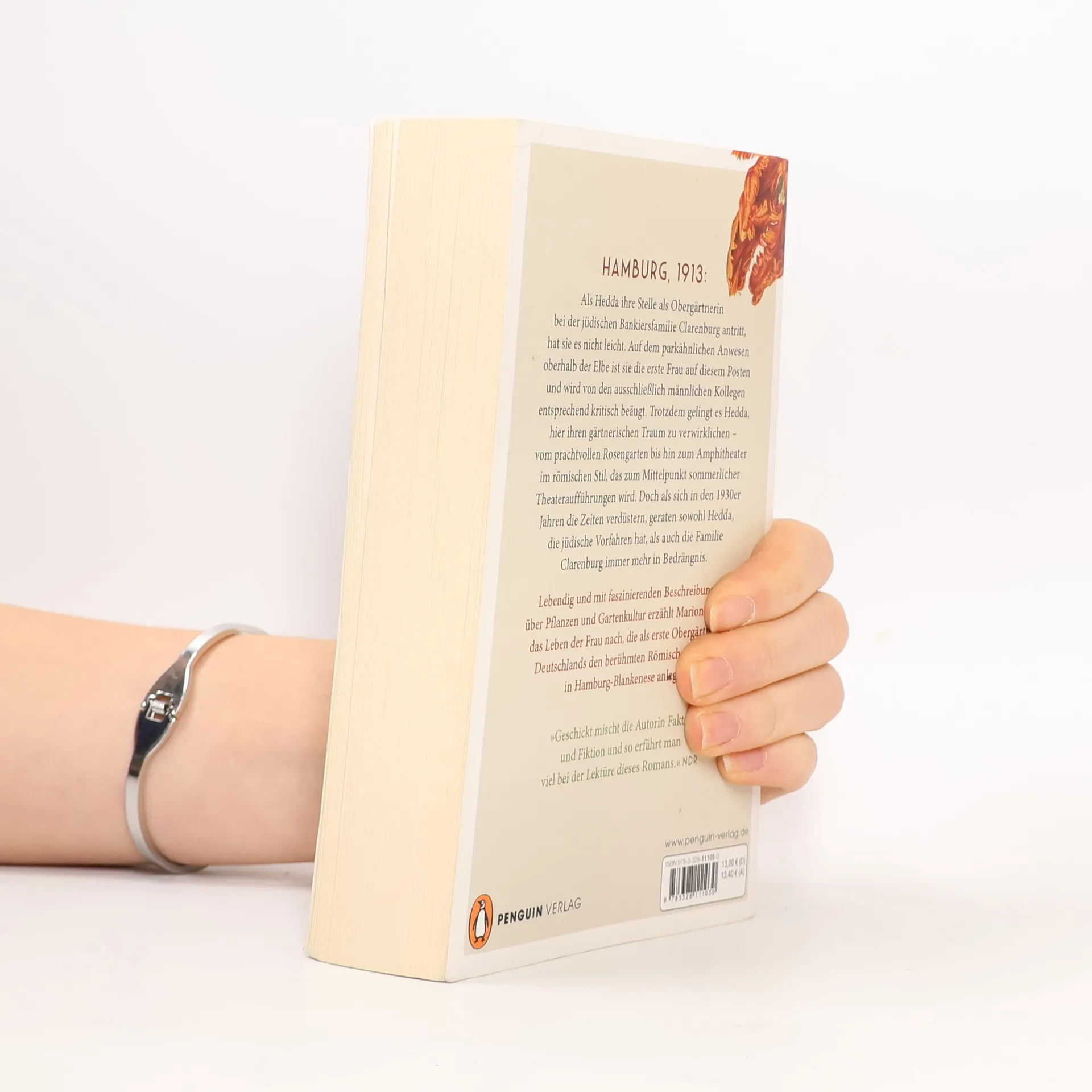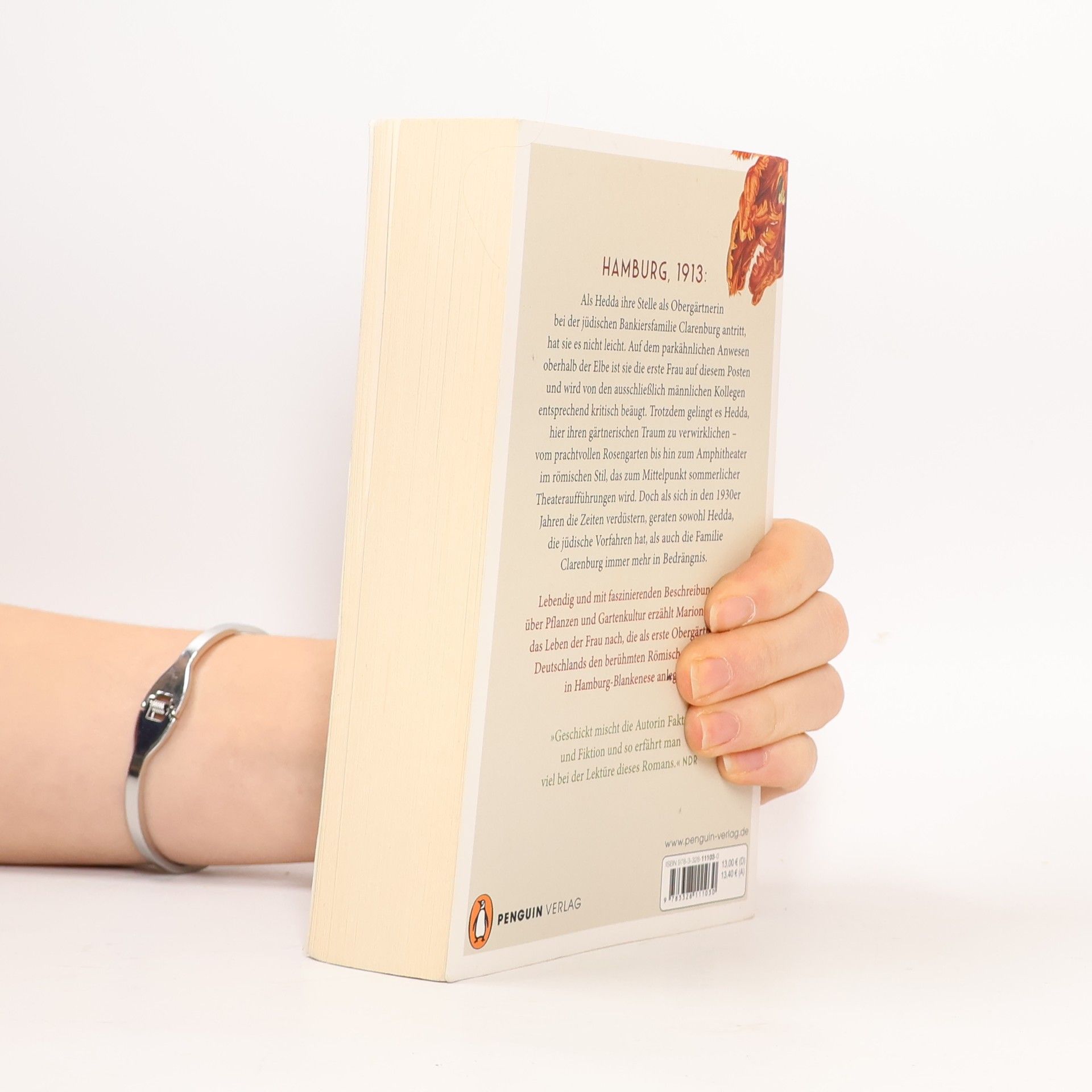Atmosphärisch und eindrücklich – eine Frau verwirklicht ihren Traum eines Gartens hoch über der Elbe, der später weltberühmt wird Hamburg, 1913: Als Hedda ihre Stelle als Obergärtnerin bei der jüdischen Bankiersfamilie Clarenburg antritt, hat sie es nicht leicht. Auf dem parkähnlichen Anwesen oberhalb der Elbe ist sie die erste Frau auf diesem Posten und wird von den ausschließlich männlichen Kollegen entsprechend kritisch beäugt. Auch körperlich wird ihr viel abverlangt, denn das Anwesen über der Elbe ist riesig, und der Erste Weltkrieg fordert ihr gärtnerisches Können noch einmal besonders heraus. Trotzdem gelingt es Hedda, hier ihren gärtnerischen Traum zu verwirklichen – bis hin zum Amphitheater im römischen Stil, das zum Mittelpunkt prachtvoller Feste und Theateraufführungen wird. Doch als sich in den 1930er Jahren die Zeiten verdüstern, geraten sowohl Hedda, die jüdische Vorfahren hat, als auch die Familie Clarenburg immer mehr in Bedrängnis. Lebendig und mit faszinierenden Pflanzenbeschreibungen erzählt Marion Lagoda das Leben der Frau nach, deren wahrer Name Else Hoffa lautete und die als Obergärtnerin der Familie Warburg den berühmten Römischen Garten in Hamburg-Blankenese anlegte. Inspirierend und kenntnisreich – das ideale Geschenk für Gartenliebhaber*innen.