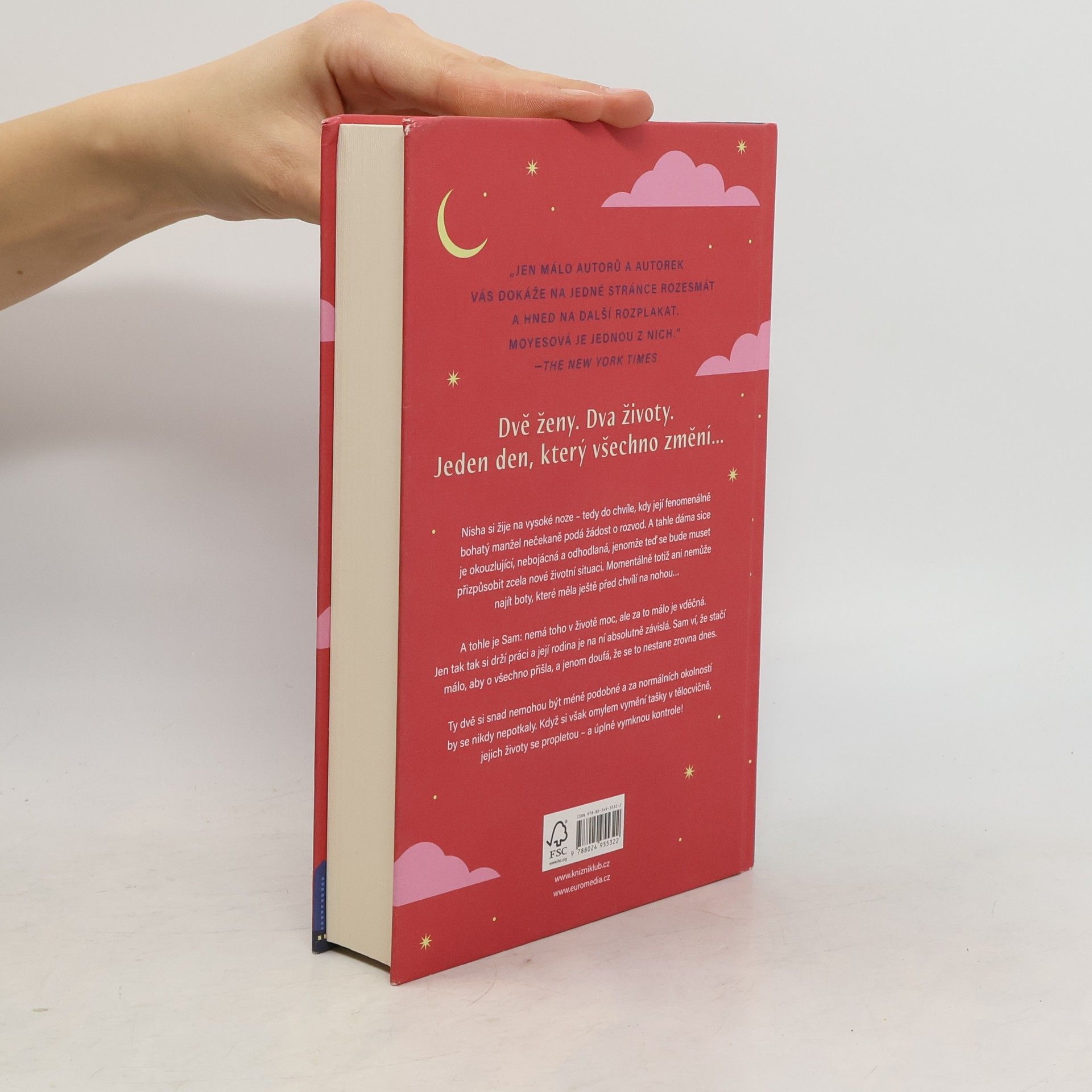 Seznamte se se Sam. Nemá toho moc, ale za to málo je vděčná: jen tak tak si drží svou práci a její rodina je na ni ve všech ohledech závislá. Ví, že ji jeden špatný den dělí od toho, aby o všechno přišla, a jenom doufá, že to nebude dnes… A tohle je Nisha. Má všechno, o čem vždycky snila, její manžel je fenomenálně bohatý a ona si žije na vysoké noze… tedy až do chvíle, kdy její muž podá žádost o rozvod. Sam a Nisha se nikdy neměly potkat. Ale když si omylem vymění tašky v tělocvičně, jejich životy se propletou – a úplně vymknou kontrole…