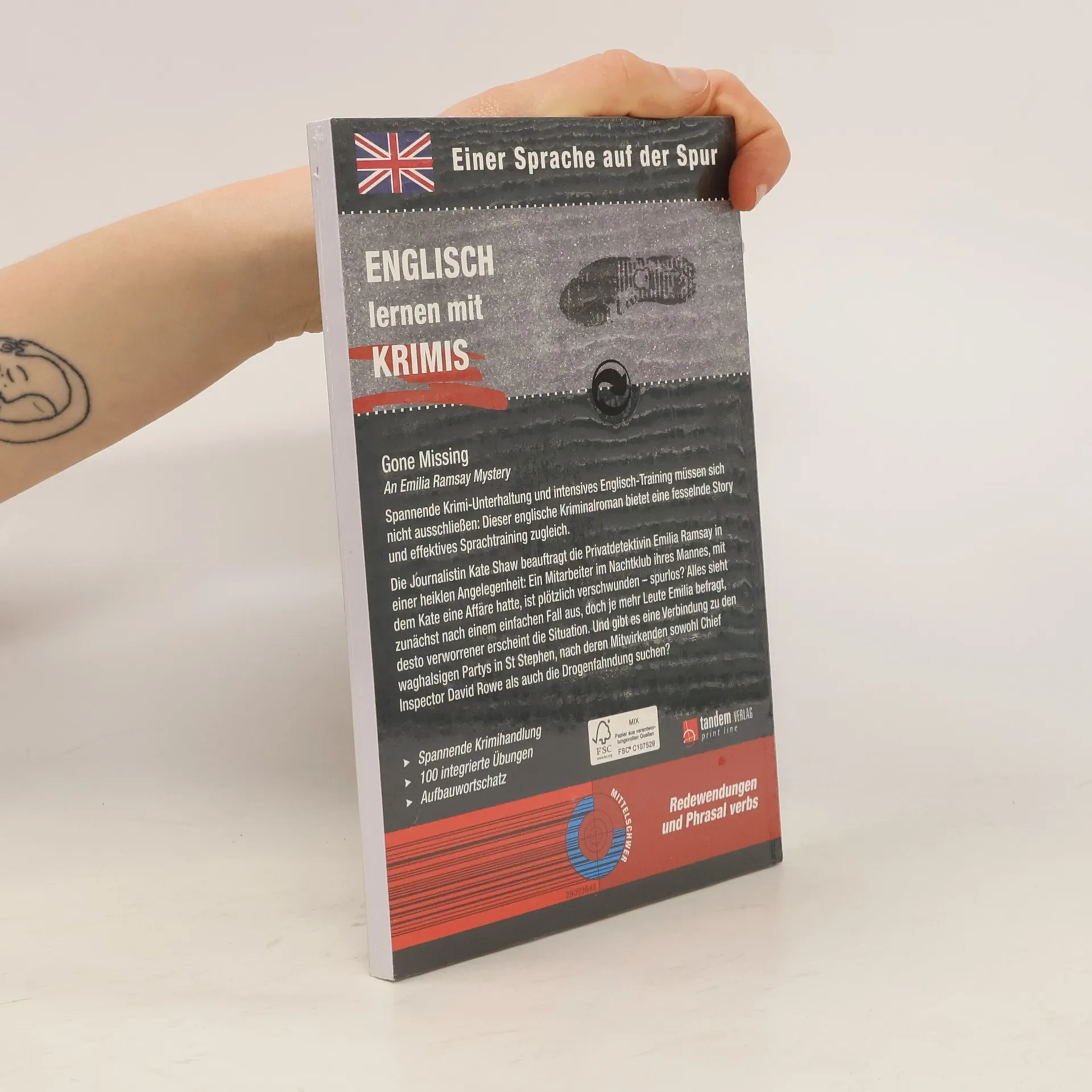 Einer Sprache auf der Spur: Englisch lernen mit Krimis Diese Reihe englischsprachiger Kriminalromane bietet fesselnde Storys und intensives Englisch-Training zugleich. Im Laufe der Handlung sind ca. 100 Lernübungen eingestreut, die der Leser zwischendurch bearbeiten kann. Auf diese Weise wird das Gelesene vertieft und der Lernfortschritt überprüft. Gone Missing: Die Journalistin Kate Shawbeauftragt die Privatdetektivin Emilia Ramsay in einer heiklen Angelegenheit: Ein Mitarbeiter im Nachtklub ihres Mannes, mit dem Kate eine Affäre hatte, ist plötzlich verschwunden - spurlos? Alles sieht zunächst nach einem einfachen Fall aus, doch je mehr Leute Emilia befragt, desto verworrener erscheint die Situation. Und gibt es eine Verbindung zu den waghalsigen Partys in St Stephen, nach deren Mitwirkenden sowohl Chief Inspector David Rowe als auch die Drogenfahndung suchen? Übungsschwerpunkt: Redewendungen und Phrasal verbs Text- und Übungsniveau: mittelschwer Anspruchsvollere Vokabeln werden am Seitenende übersetzt. Ein Abschlussquiz stellt Fragen zur Handlung. Hier kann der Leser im Selbsttest prüfen, ob er die Handlung verstanden hat. Fremdsprachenkenntnisse auf unterhaltsame Weise verbessern, nach dem Motto: gespannt Krimis lesen – entspannt Englisch lernen.