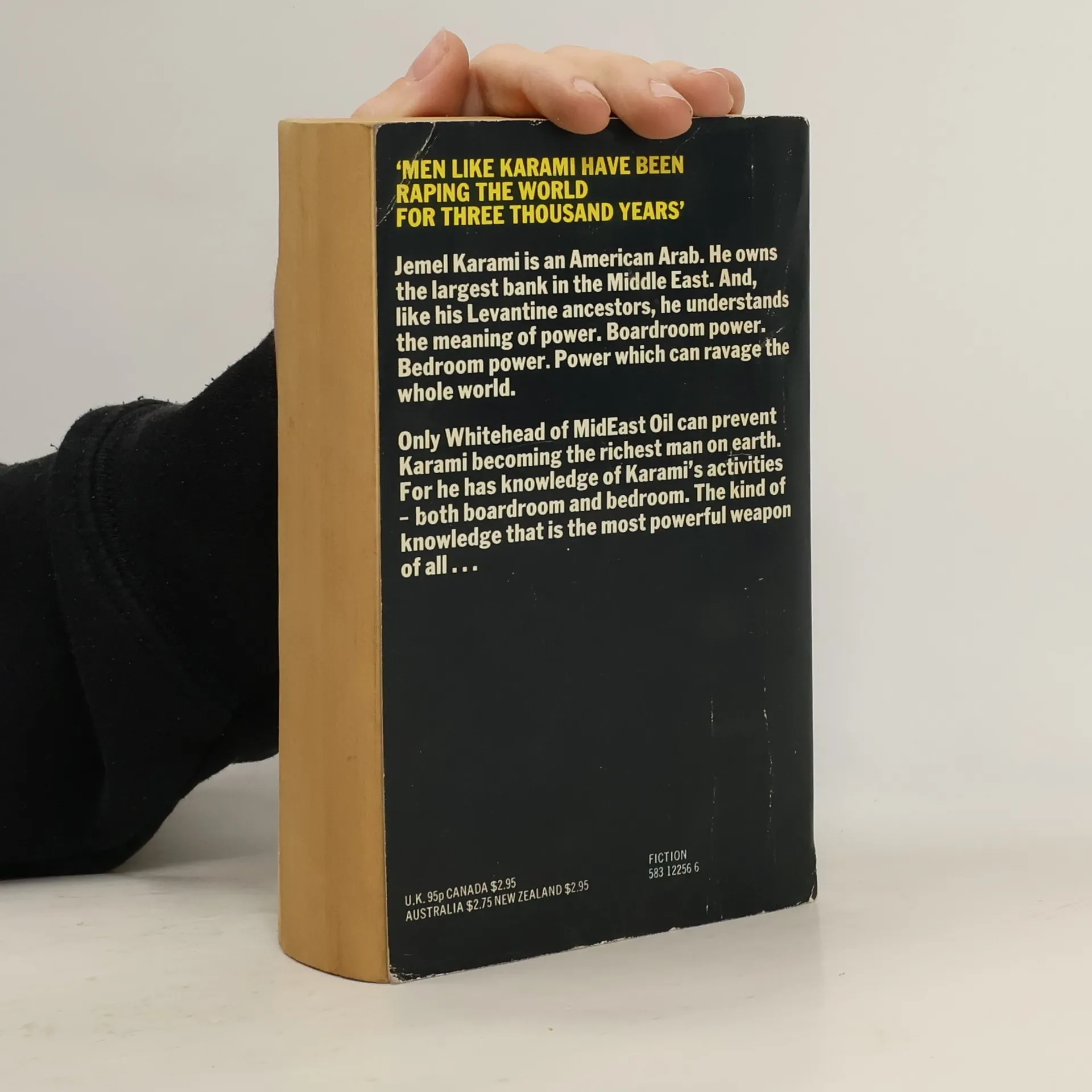 'Men like Karami have been raping the world for three thousand years'Jemel Karami is an American Arab. He owns the largest bank in the Middle East. And, like his Levantine ancestors, he understands the meaning of power. Boardroom power. Bedroom power. Power which can ravage the whole world. Only Whitehead of MidEast Oil can prevent Karami becoming the richest man on earth. For he has knowledge of Karami's activities - both boardroom and bedroom. The kind of knowledge that is the most powerful weapon of all...