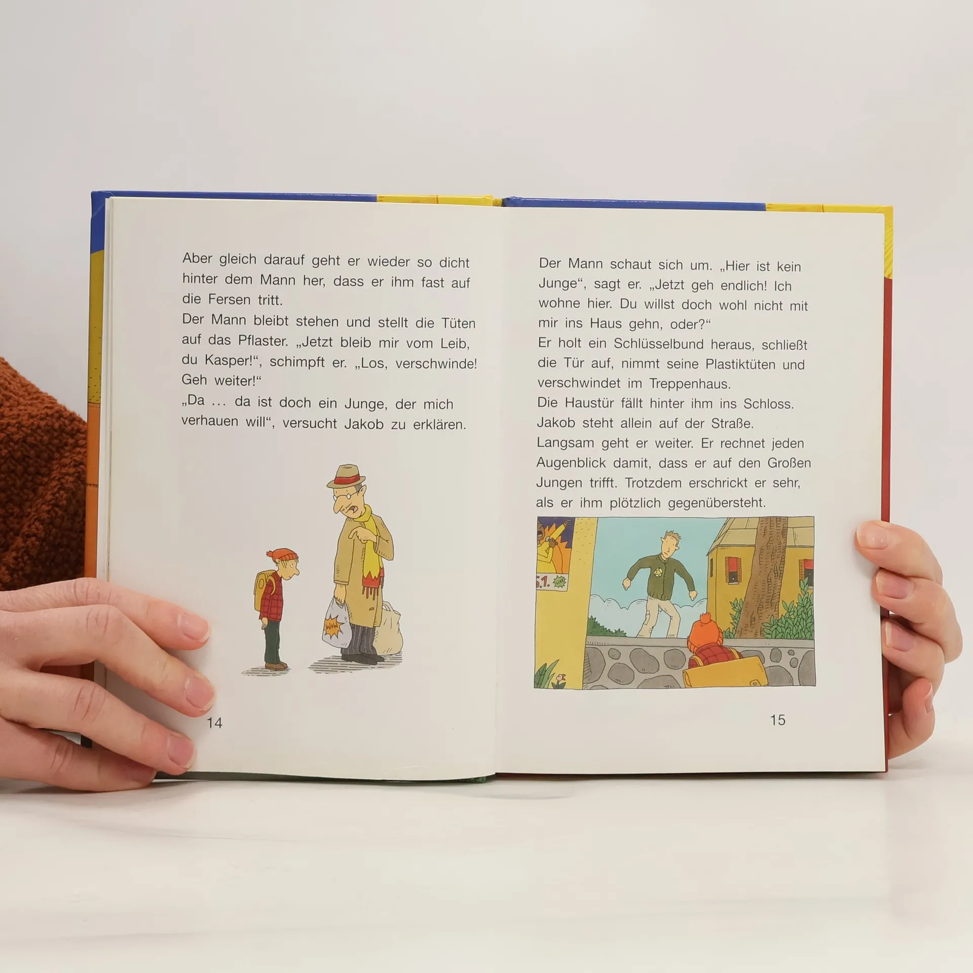 Jakob hat Bauchweh. Aber das stimmt gar nicht. Jakob möchte nicht in die Schule gehen. Denn auf dem Rückweg, da lauert ihm jeden Tag der Große Junge auf und ärgert ihn. Jakobs Freund Mehmet kann ihm auch nicht helfen, denn der Große Junge ist viel größer und stärker als die beiden. Aber da bekommt Jakob eines Tages unerwartet Hilfe - ausgerechnet von einem Mädchen! Paul Maars Geschichte vom kleinen Jakob, der erlebt, was so viele Grundschüler kennen, war vergriffen und erscheint jetzt neu mit farbigen Bildern.