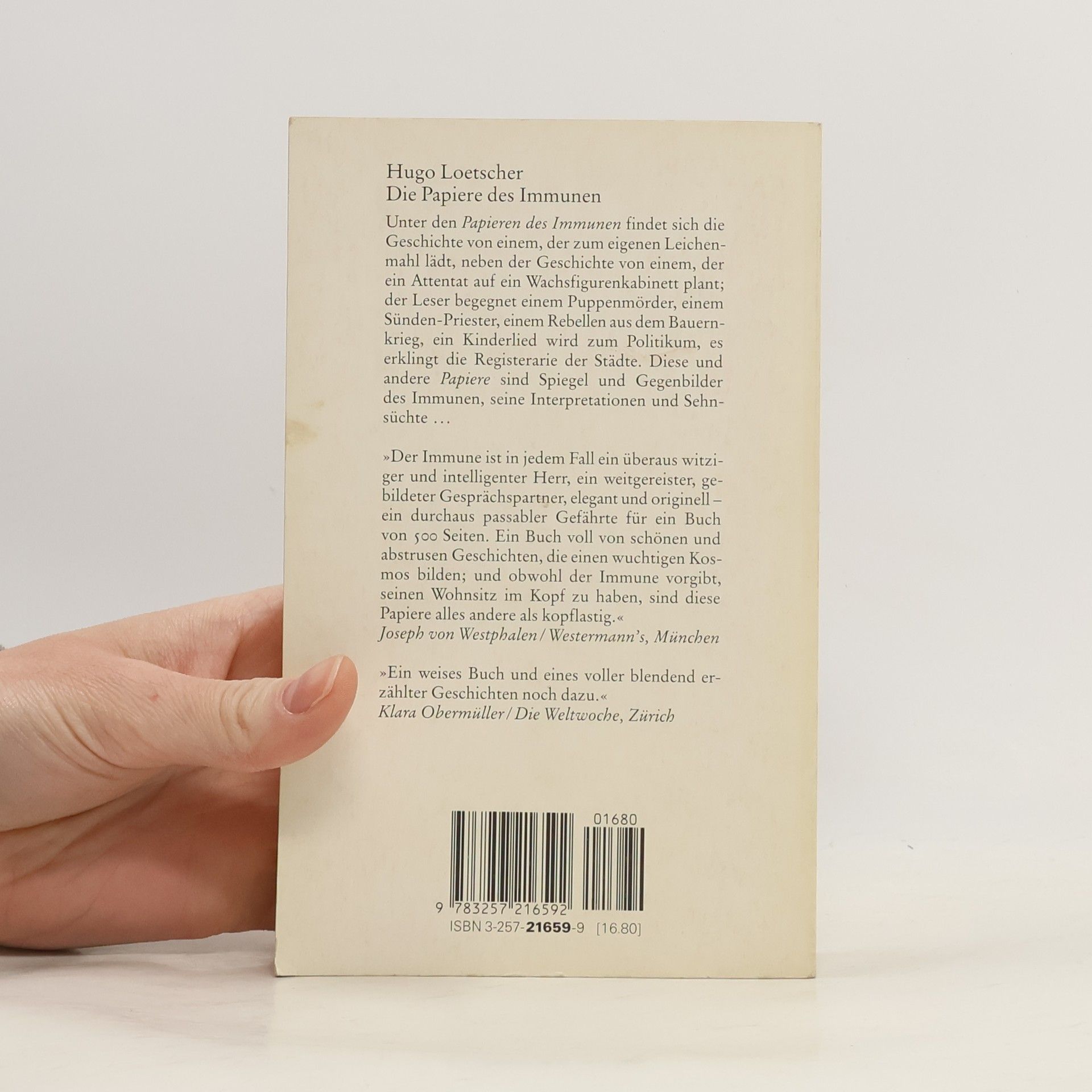 Die Papiere des Immunen, Hugo Loetscher