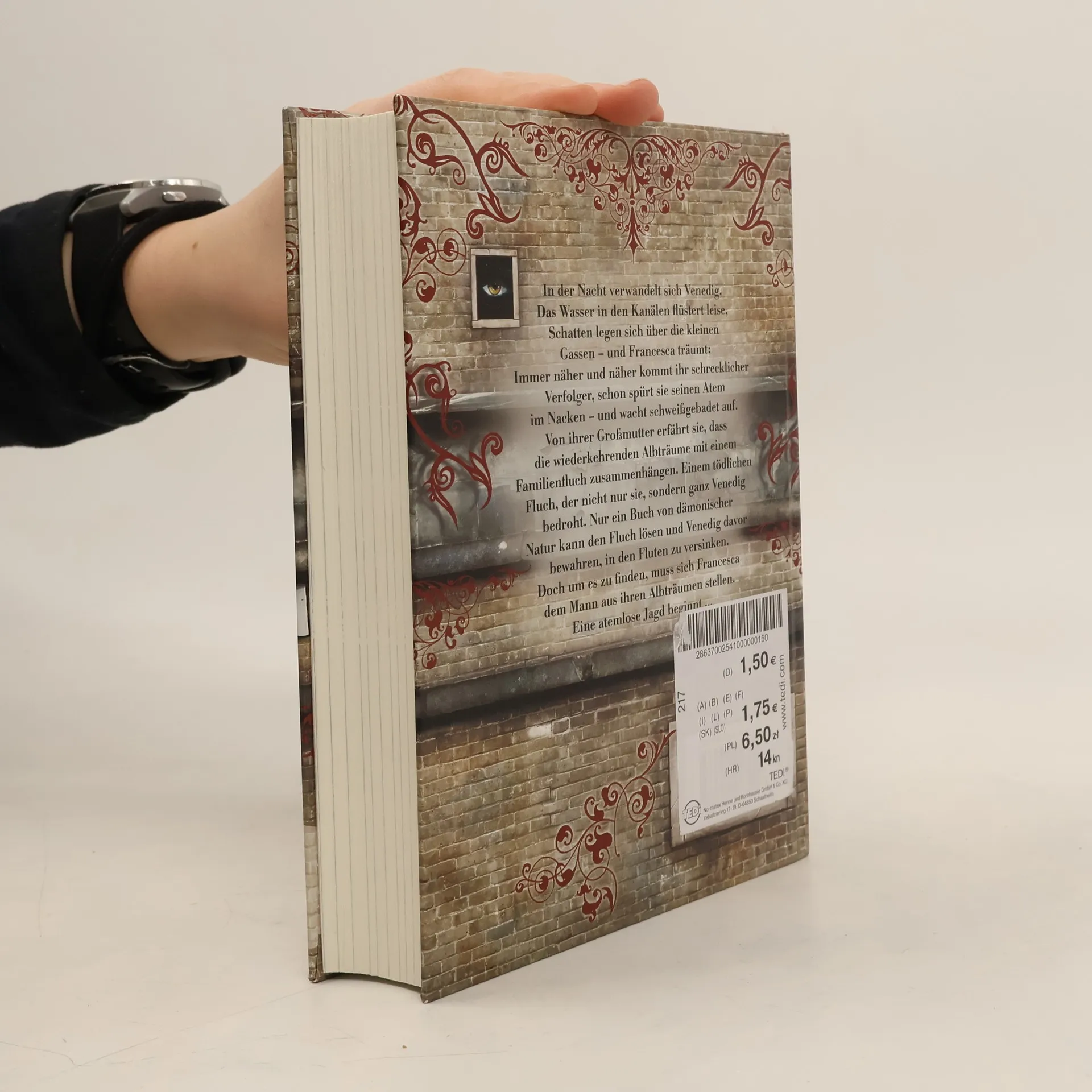 In der Nacht verwandelt sich Venedig. Das Wasser in den Kanälen flüstert leise, Schatten legen sich über die kleinen Gassen - und Francesca träumt: Immer näher und näher kommt ihr schrecklicher Verfolger, schon spürt sie seinen Atem im Nacken - und wacht schweißgebadet auf. Von ihrer Großmutter erfährt sie, dass die wiederkehrenden Albträume mit einem Familienfluch zusammenhängen. Einem tödlichen Fluch, der nicht nur sie, sondern ganz Venedig bedroht. Nur ein Buch von dämonischer Natur kann den Fluch lösen und Venedig davor bewahren, in den Fluten zu versinken. Doch um es zu finden, muss sich Francesca dem Mann aus ihren Albträumen stellen. Eine atemlose Jagd beginnt.