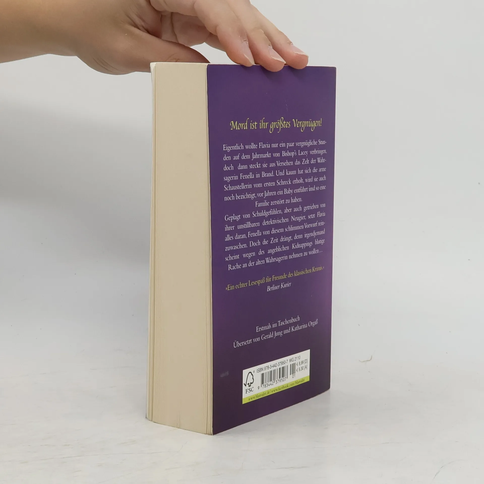 Eigentlich wollte Flavia nur ein paar vergnügliche Stunden auf dem Jahrmarkt von Bishop’s Lacey verbringen, doch dann steckt sie aus Versehen das Zelt der Wahrsagerin Fenella in Brand. Und wenig später wird die arme Schaustellerin auch noch bezichtigt, vor Jahren ein Baby entführt zu haben. Getrieben von ihrer unstillbaren detektivischen Neugier, setzt Flavia alles daran, Fenella von diesem Vorwurf reinzuwaschen. Doch die Zeit drängt, denn irgendjemand scheint wegen des Kidnappings blutige Rache an der alten Wahrsagerin nehmen zu wollen …Bradley/e393989.rhd\">http://www.randomhouse.de/Taschenbuch... --