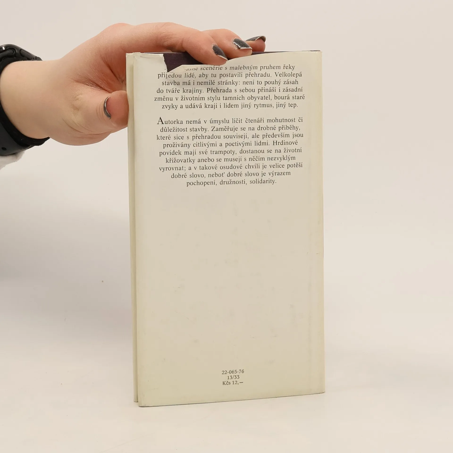 Čtyři povídky o osudech lidí, do jejichž života zasahuje stavba přehrady. Hrdinové jsou náhle vytrženi z rytmu zaběhaného života, postaveni do nezvyklých a někdy i mezních situací a v takových chvílích pomáhá lidská družnost, solidarita a i dobré slovo... Povídky: - Půl díla - Druhý břeh - Hráz - Dobré slovo