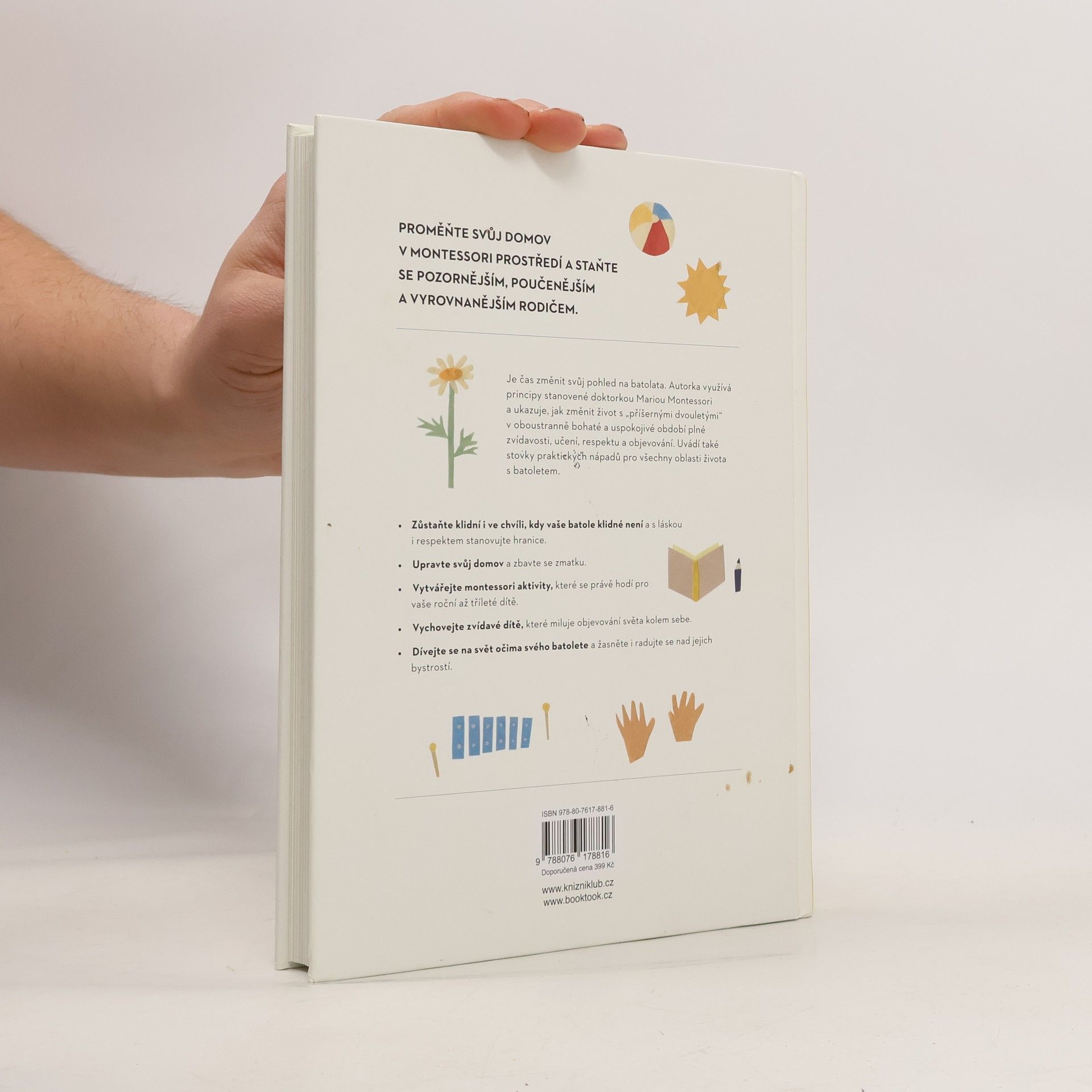 Srozumitelná a komplexní příručka k výchově batolat podle Montessori. Chcete najít způsob, jak si výchovu batolete víc užívat? Povzbuzovat svoje dítě k tomu, aby se rádo učilo? Dosáhnout toho, že dítě spolupracuje, aniž byste na něj křičeli, nebo se opakovali? Pak je tahle kniha pro vás to pravé. Montessori přístup vede děti k tomu, aby samy objevovaly svět vlastníma rukama a přebíraly odpovědnost, když je potřeba, zatímco dospělí fungují jako vedení. Tato kniha nabízí jednoduché, praktické rady, jak uplatnit zásady učení Montessori do každodenního života s dítětem ve věku do tří let.